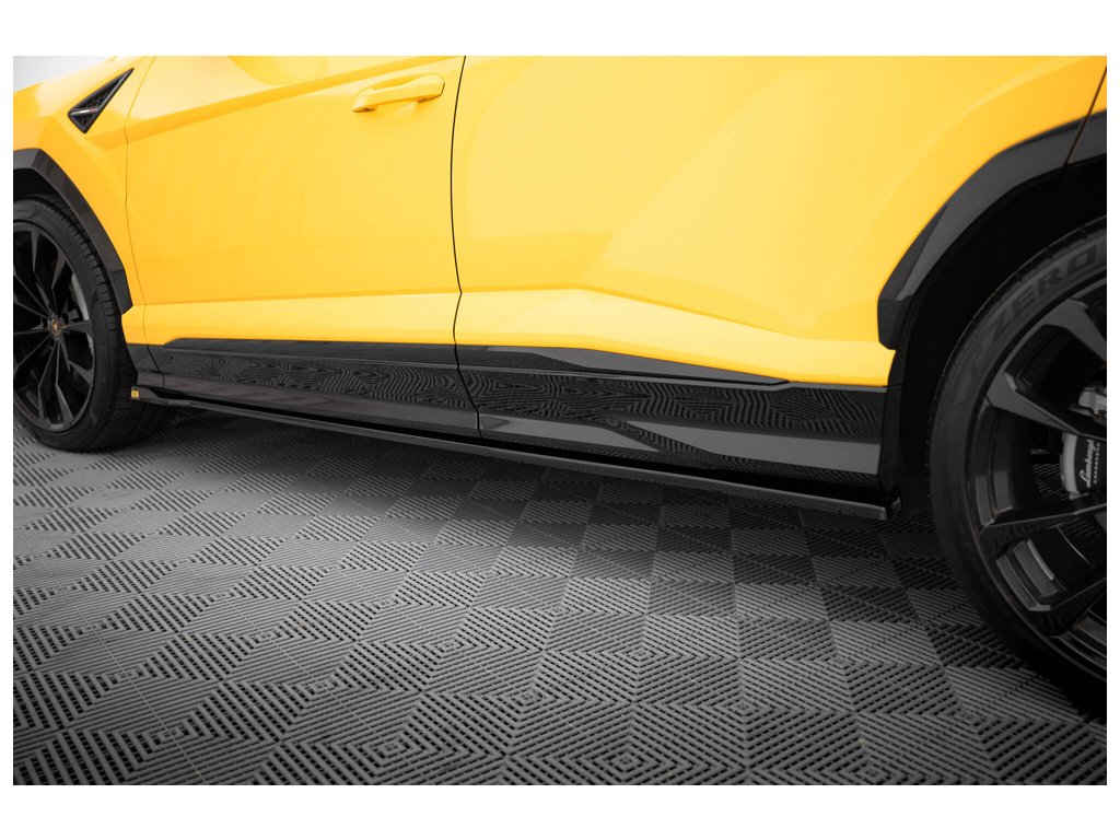 Maxton Design difuzory pod boční prahy pro vozidlo Lamborghini Urus Mk1 . Povrchová úprava spoileru černý lesklý plast ABS.