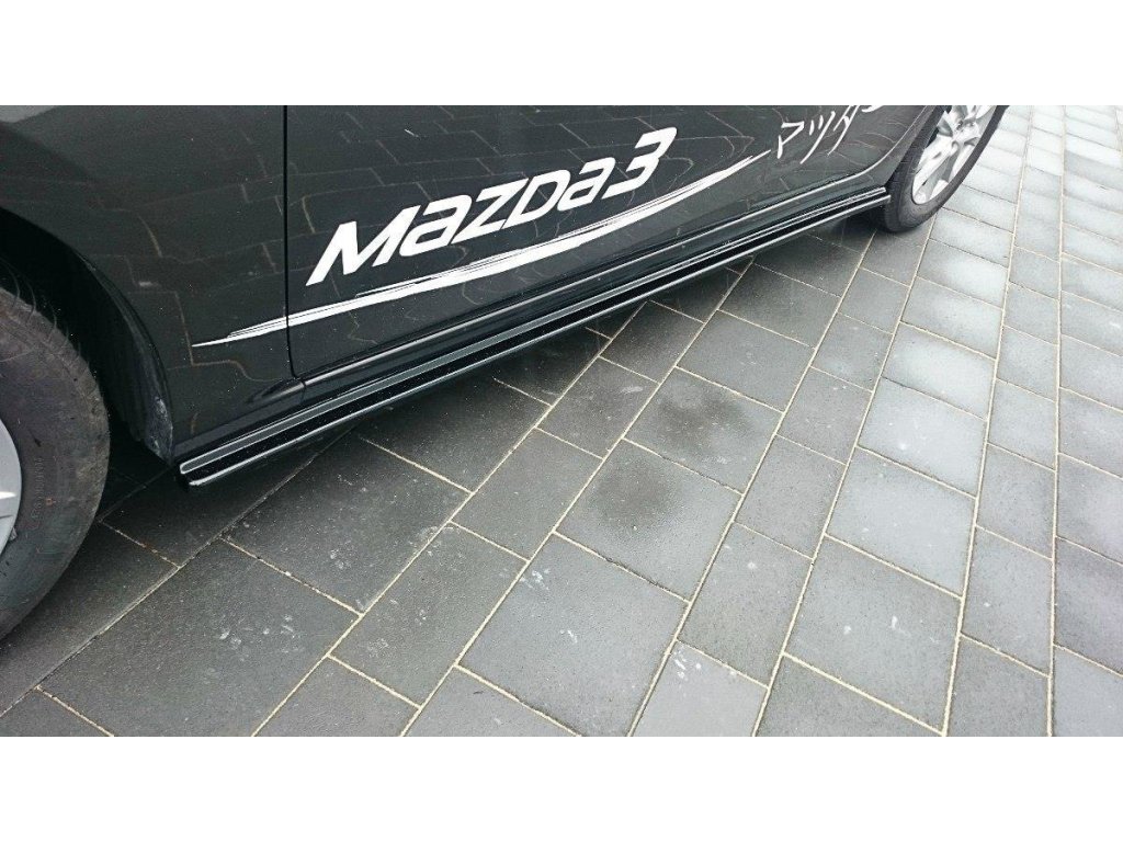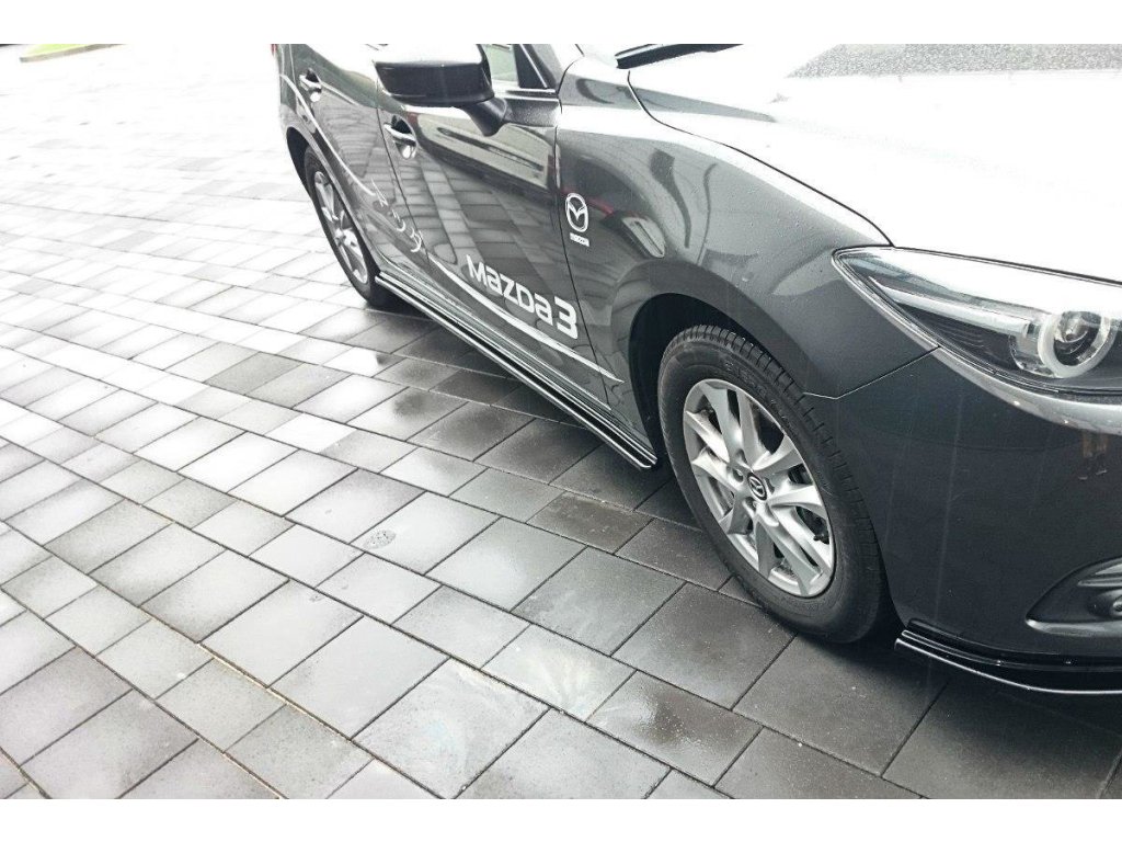 Maxton Design difuzory pod boční prahy pro vozidlo Mazda 3 Mk3, Mk3 Facelift . Povrchová úprava spoileru carbon-Look.