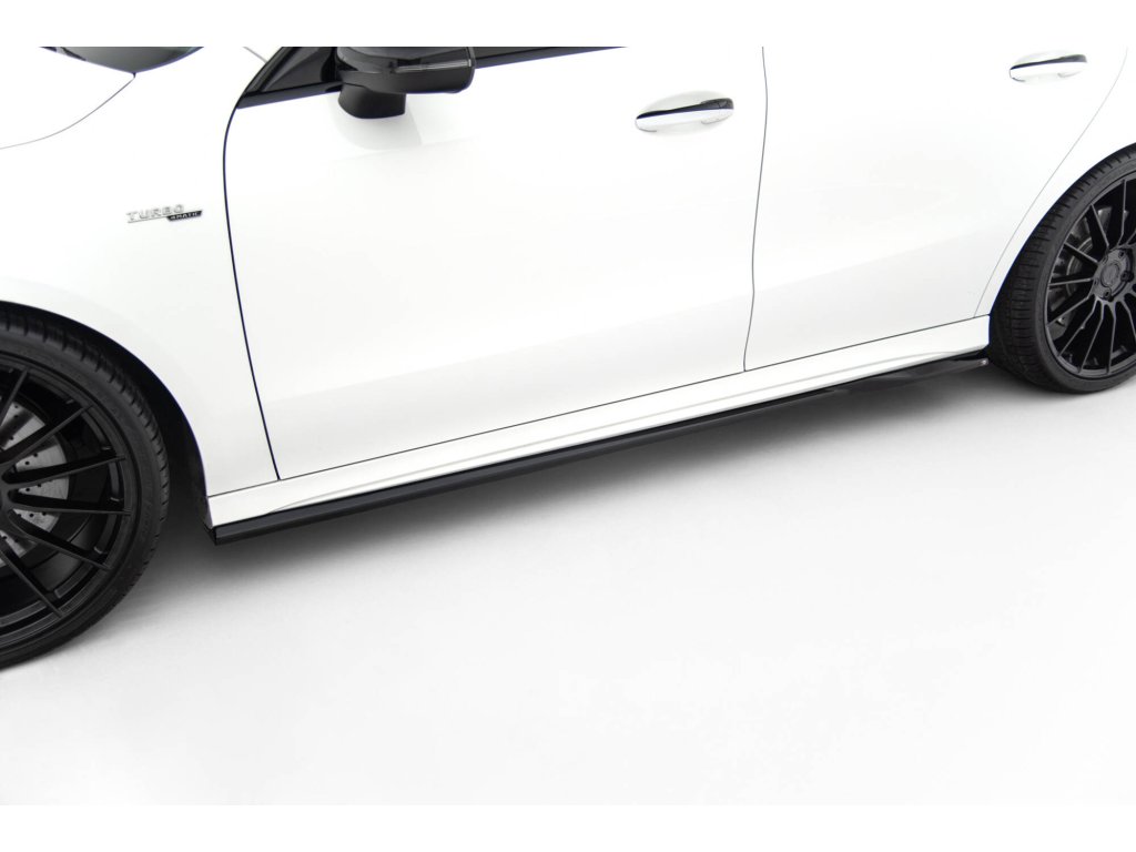 Maxton Design difuzory pod boční prahy pro vozidlo Mercedes CLA C118/AMG 35 Facelift, C118/AMG 45 Facelift . Povrchová úprava spoileru černý lesklý plast ABS.