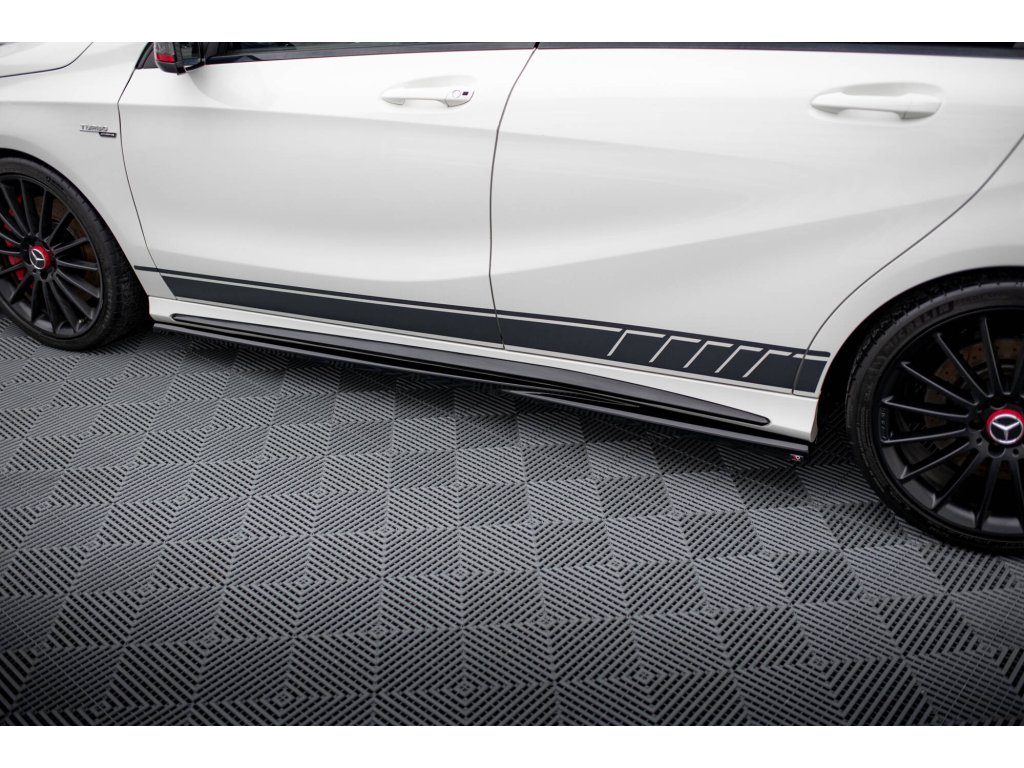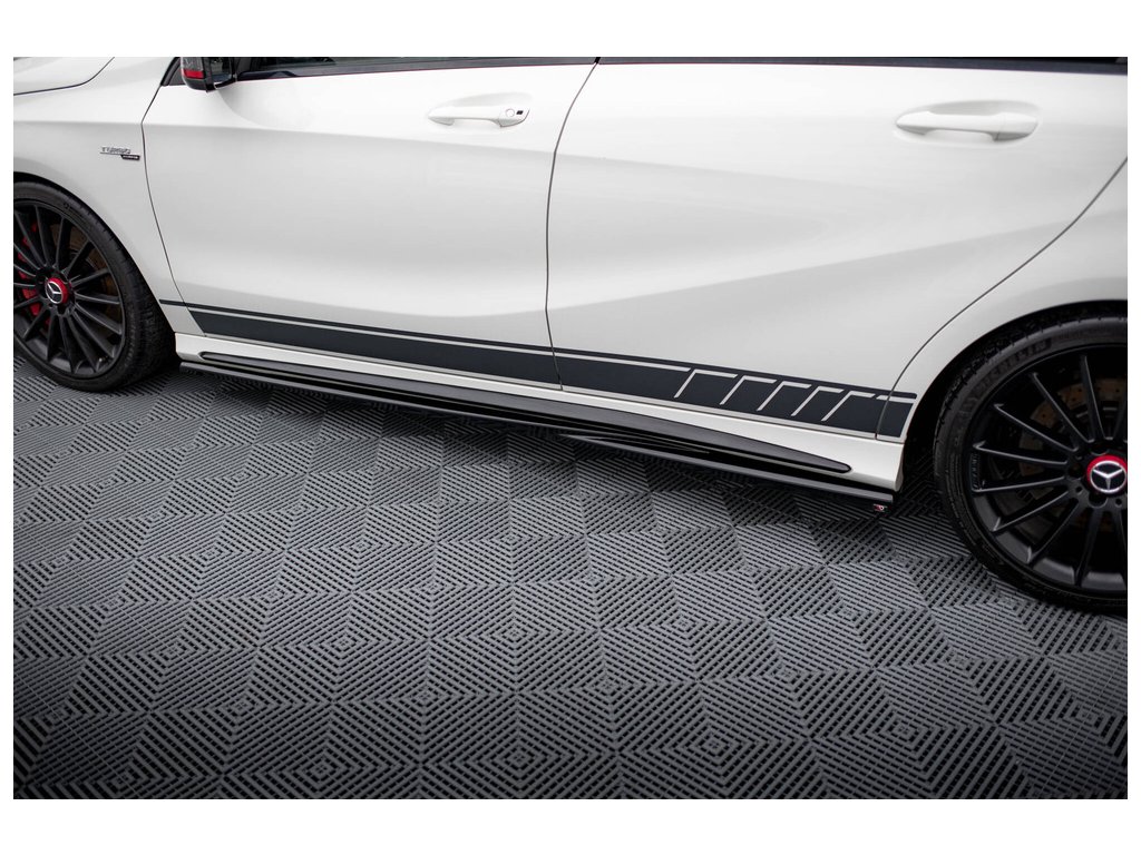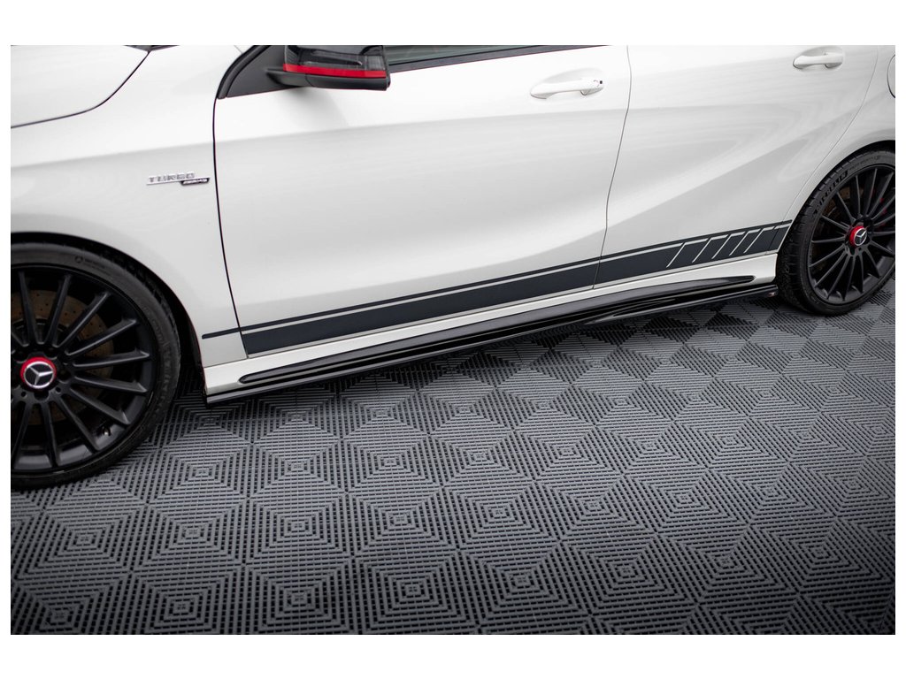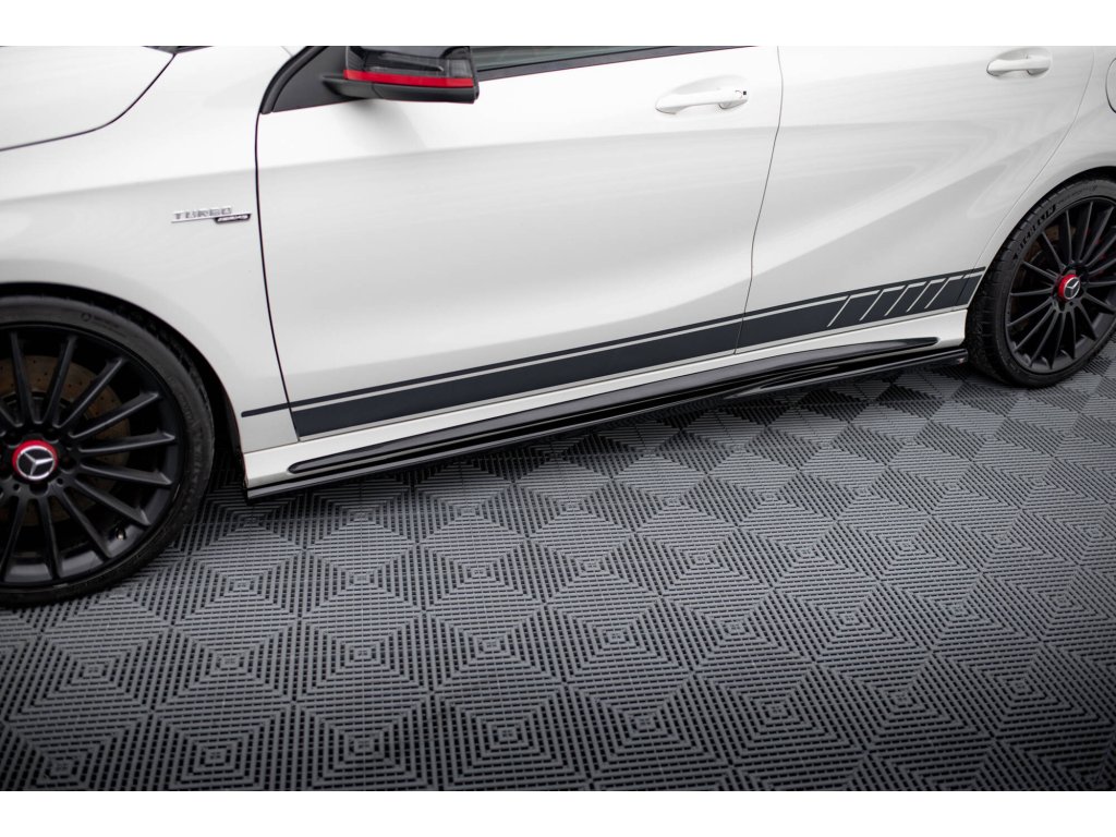 Maxton Design difuzory pod boční prahy pro vozidlo Mercedes třída A W176 45 AMG . Povrchová úprava spoileru černý lesklý plast ABS.