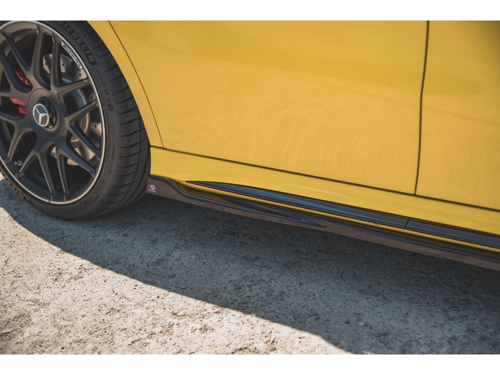 Maxton Design difuzory pod boční prahy pro vozidlo Mercedes třída A W177 45 AMG . Povrchová úprava spoileru černý lesklý plast ABS.