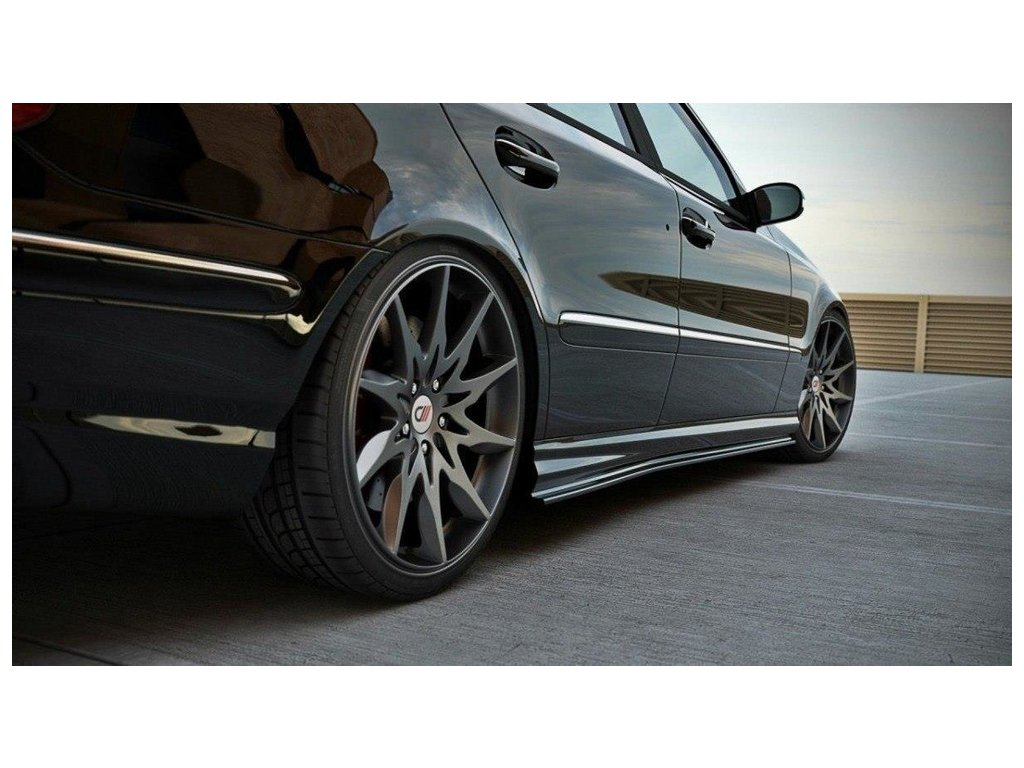 Maxton Design difuzory pod boční prahy pro vozidlo Mercedes třída E W211 . Povrchová úprava spoileru černý lesklý plast ABS.