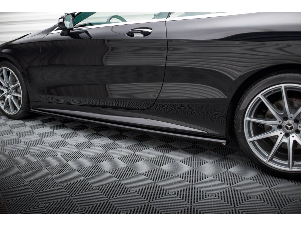 Maxton Design difuzory pod boční prahy pro vozidlo Mercedes třída S W222/Coupe (C217)/AMG-Line Facelift . Povrchová úprava spoileru černý lesklý plast ABS.