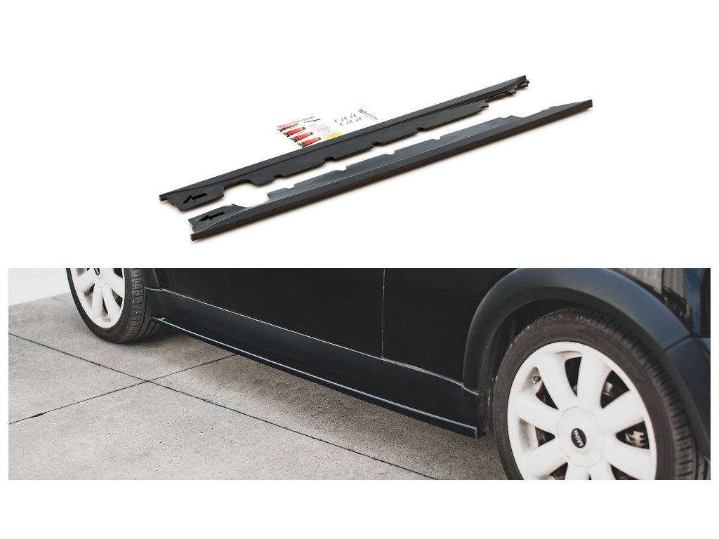 Maxton Design difuzory pod boční prahy pro vozidlo Mini Cooper R50 . Povrchová úprava spoileru carbon-Look.