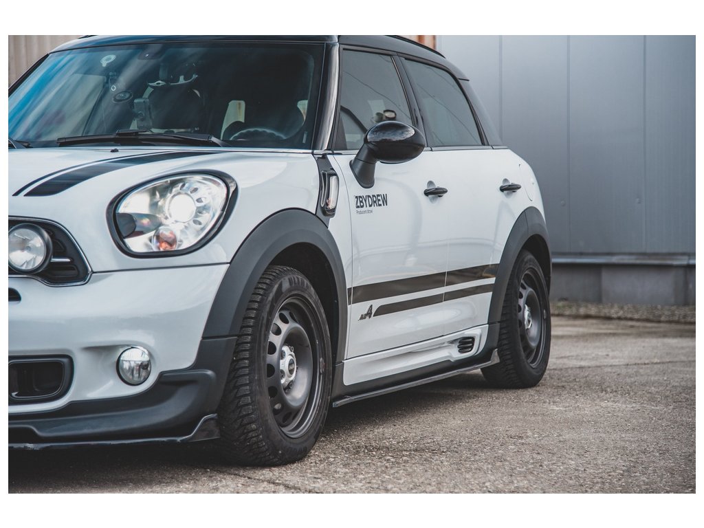 Maxton Design difuzory pod boční prahy pro vozidlo Mini Countryman R60 . Povrchová úprava spoileru černý lesklý plast ABS.