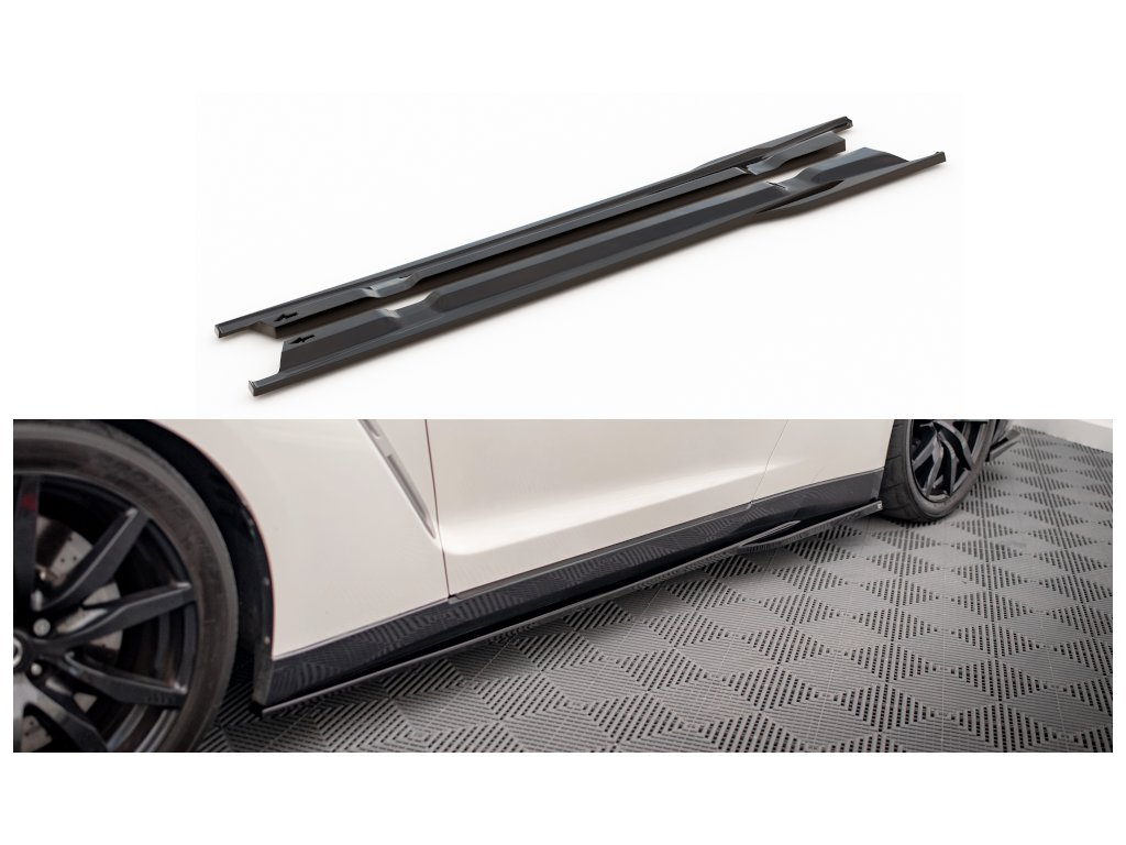 Maxton Design difuzory pod boční prahy pro vozidlo Nissan GT-R R35 Facelift . Povrchová úprava spoileru carbon-Look.