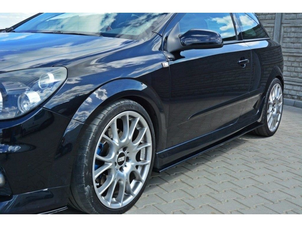 Maxton Design difuzory pod boční prahy pro vozidlo Opel Astra OPC H (Mk3) . Povrchová úprava spoileru černý lesklý plast ABS.