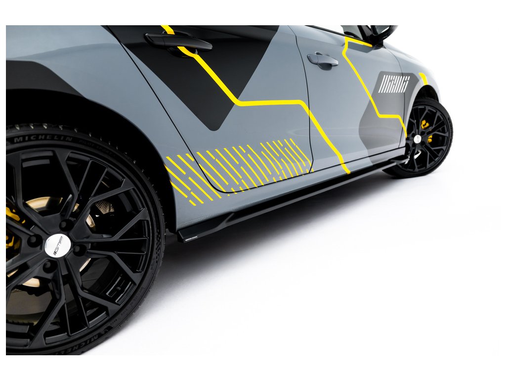 Maxton Design difuzory pod boční prahy pro vozidlo Opel Corsa F (Mk6) Facelift . Povrchová úprava spoileru černý lesklý plast ABS.