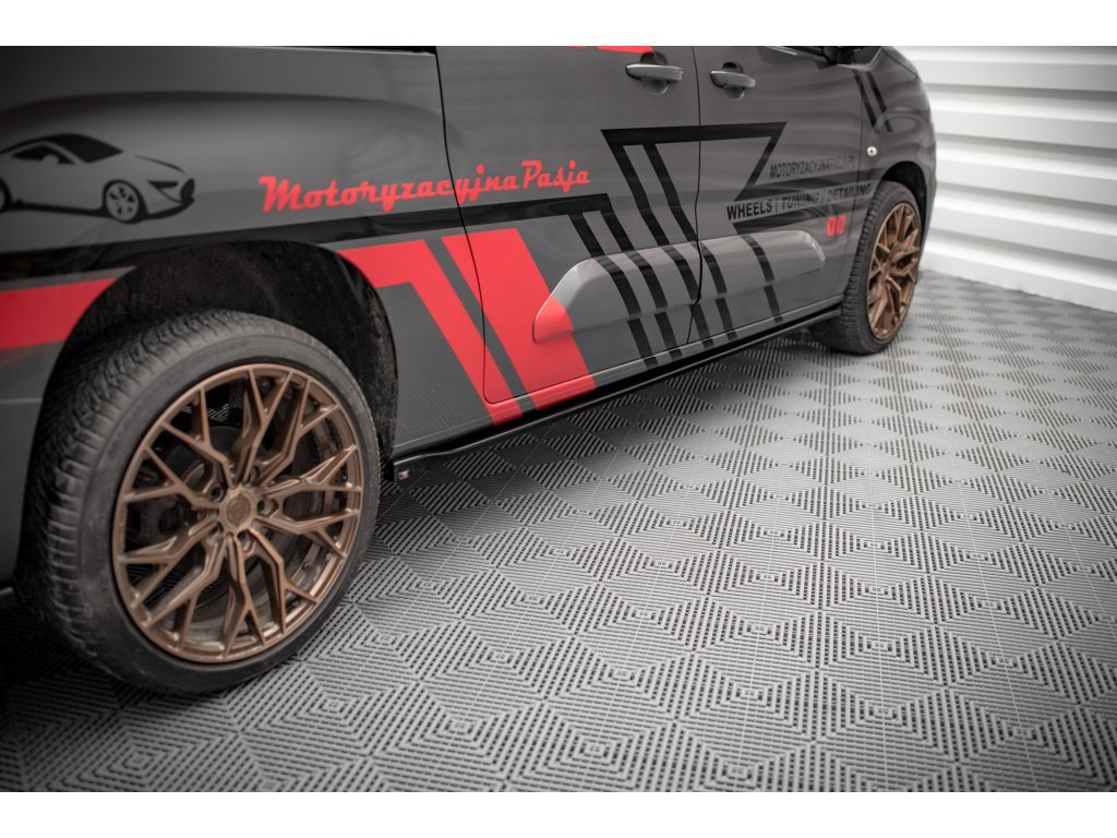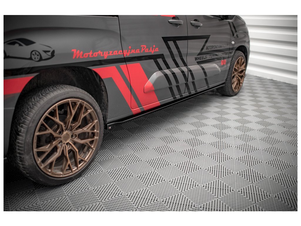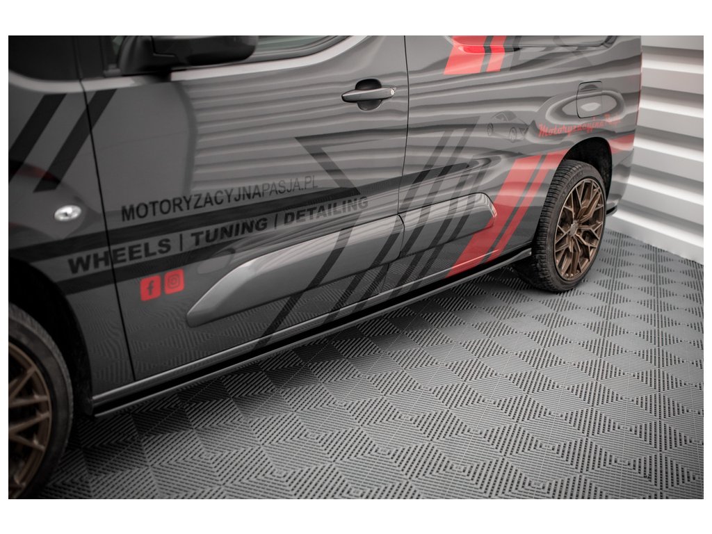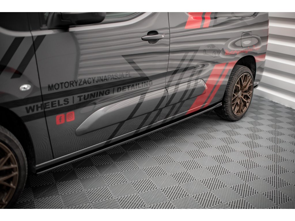 Maxton Design difuzory pod boční prahy pro Peugeot Partner Mk3, černý lesklý plast ABS