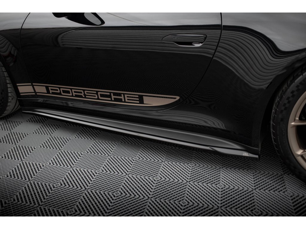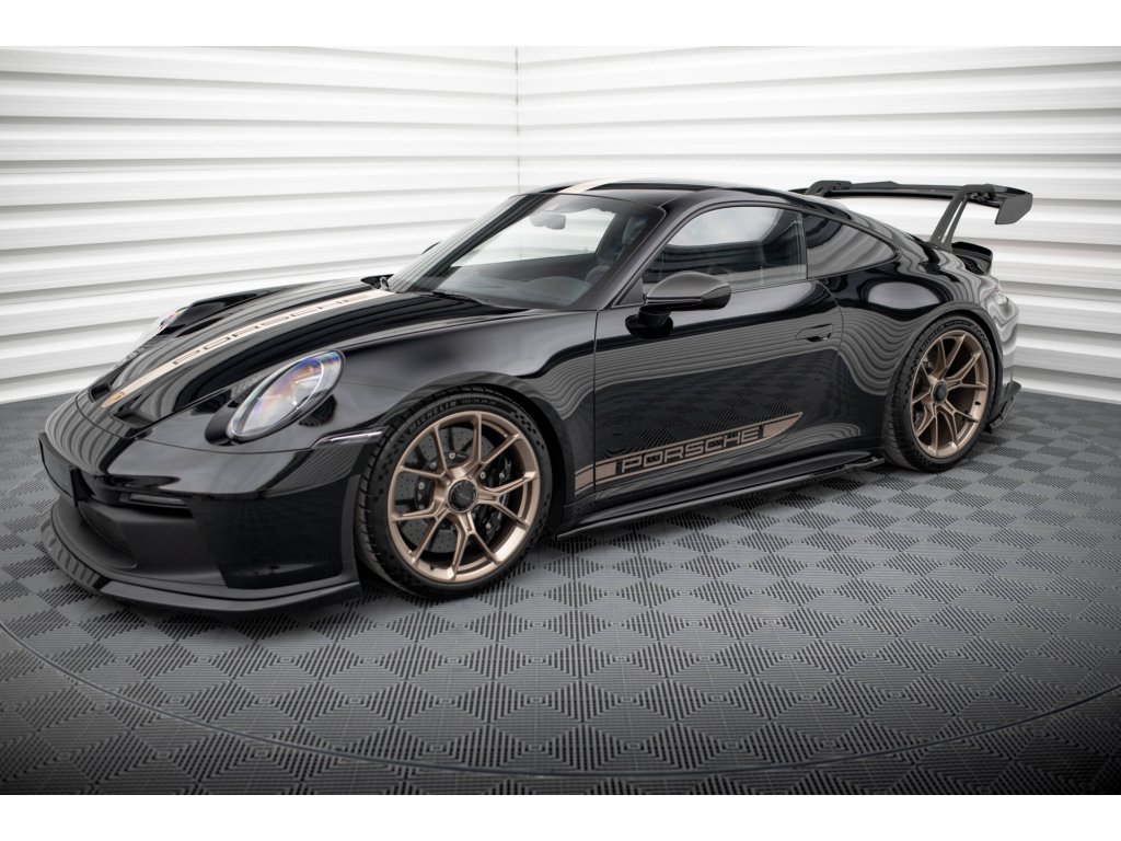 Maxton Design difuzory pod boční prahy pro vozidlo Porsche 911 992 GT3 . Povrchová úprava spoileru černý lesklý plast ABS.