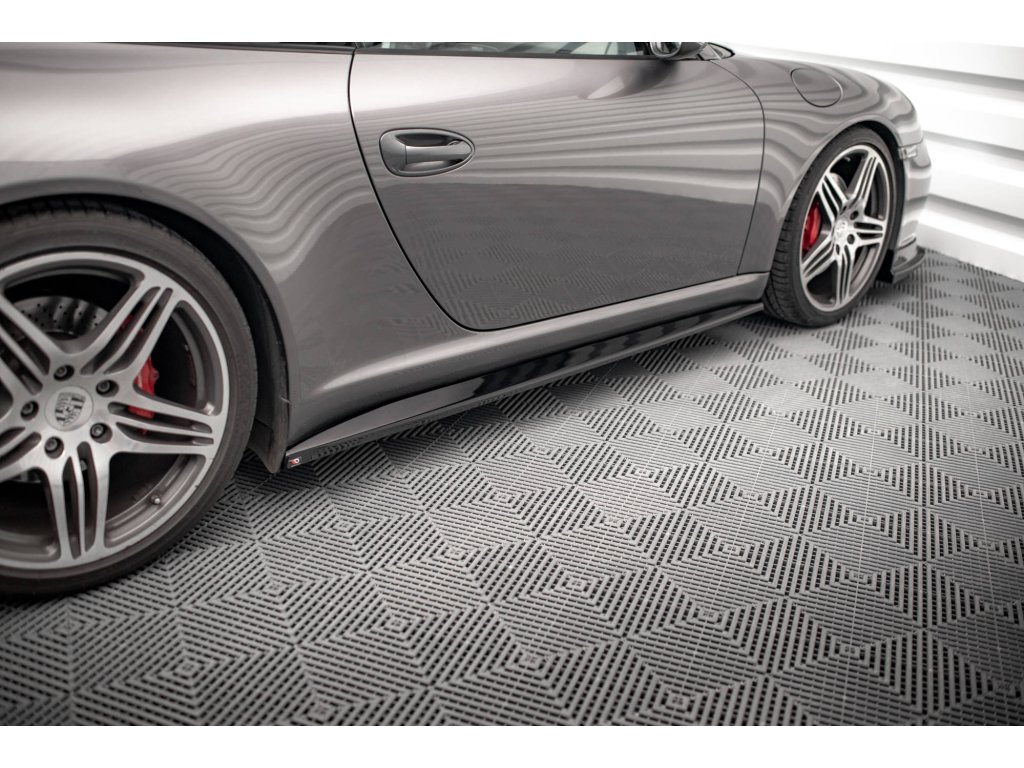 Maxton Design difuzory pod boční prahy pro Porsche 911 997 Carrera Facelift, 997 Carrera GTS Facelift, černý lesklý plast ABS
