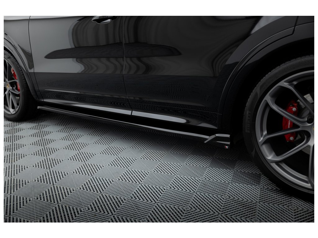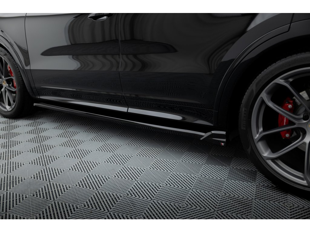 Maxton Design difuzory pod boční prahy pro vozidlo Porsche Cayenne Mk3 Coupe . Povrchová úprava spoileru černý lesklý plast ABS.