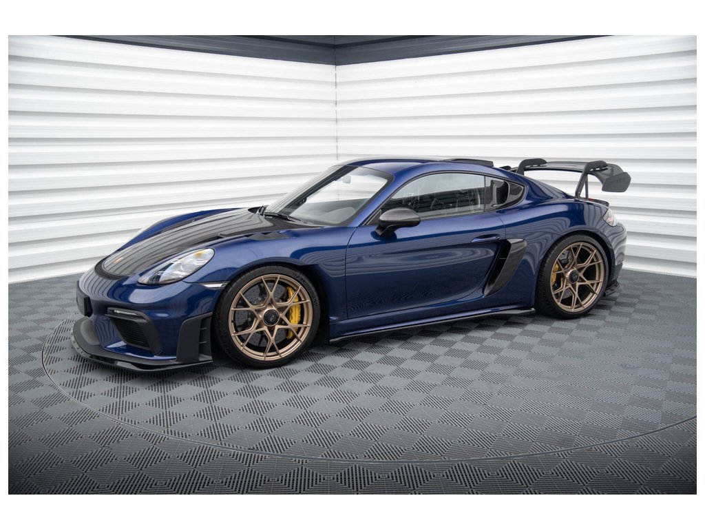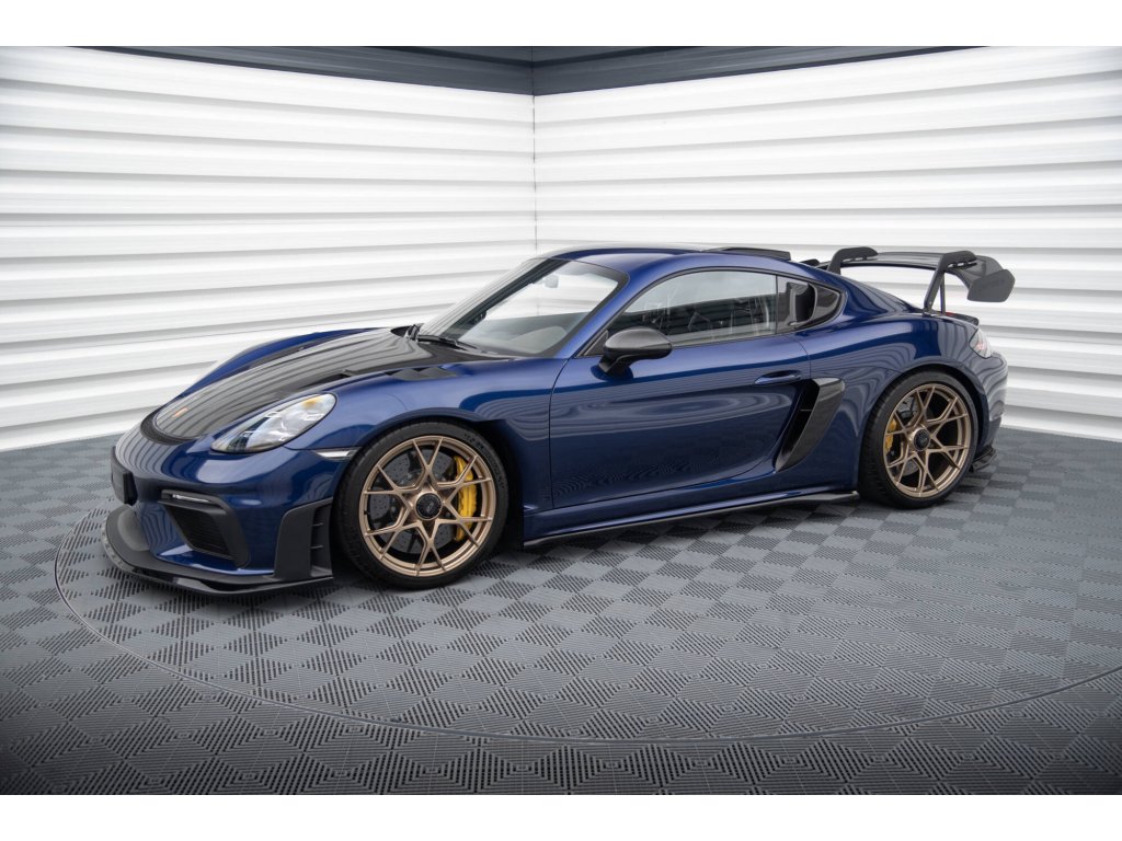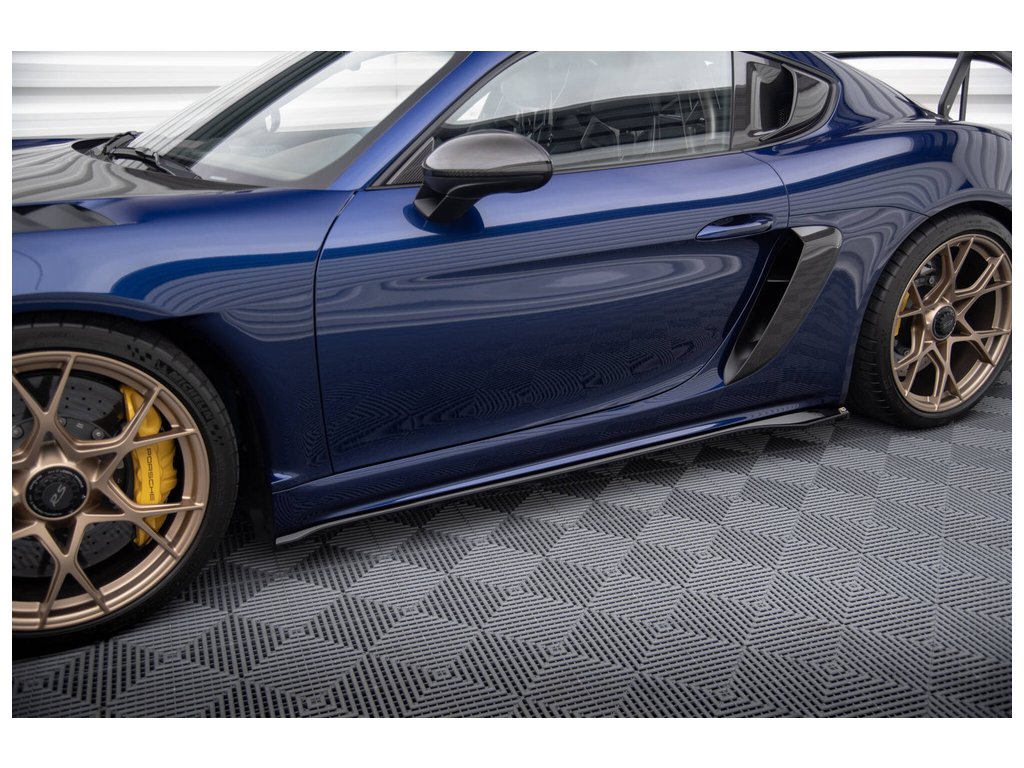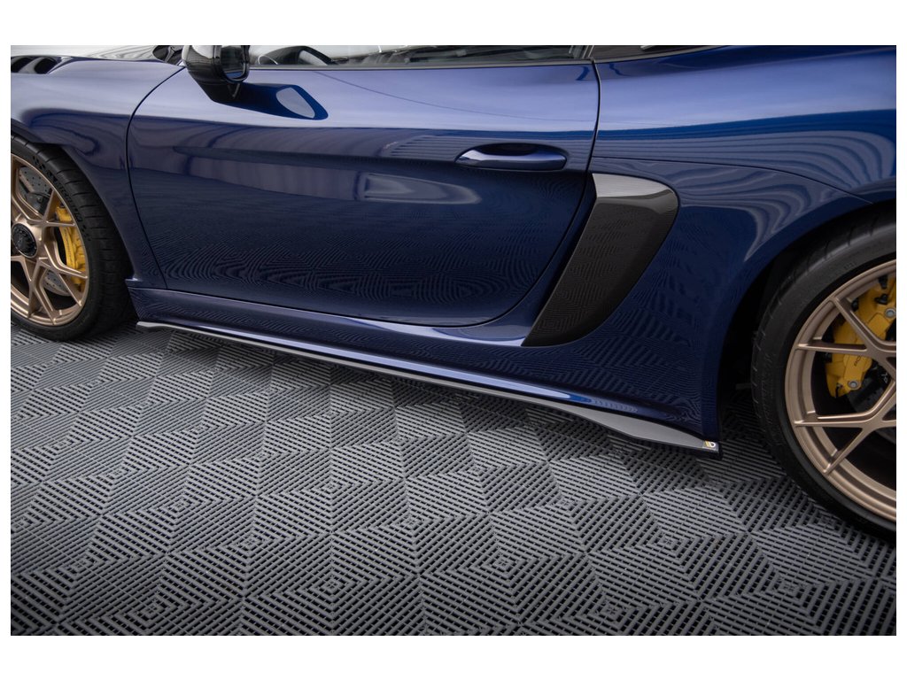 Maxton Design difuzory pod boční prahy pro vozidlo Porsche Cayman GT4 RS 982c . Povrchová úprava spoileru černý lesklý plast ABS.