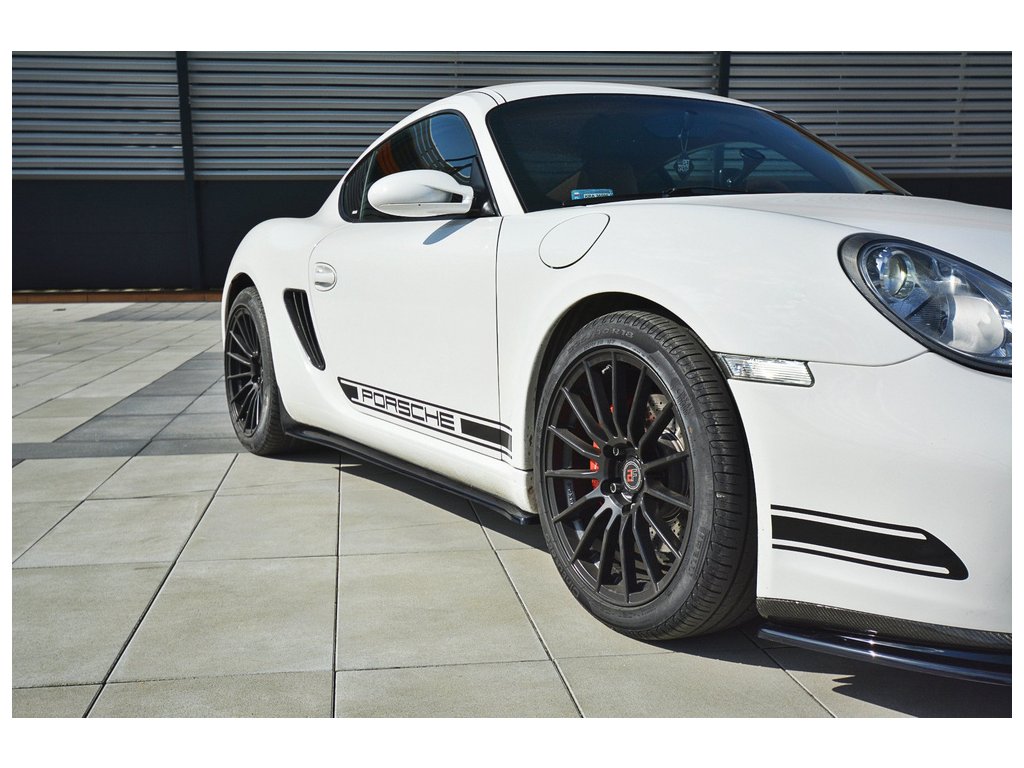 Maxton Design difuzory pod boční prahy pro vozidlo Porsche Cayman Mk1 . Povrchová úprava spoileru černý lesklý plast ABS.