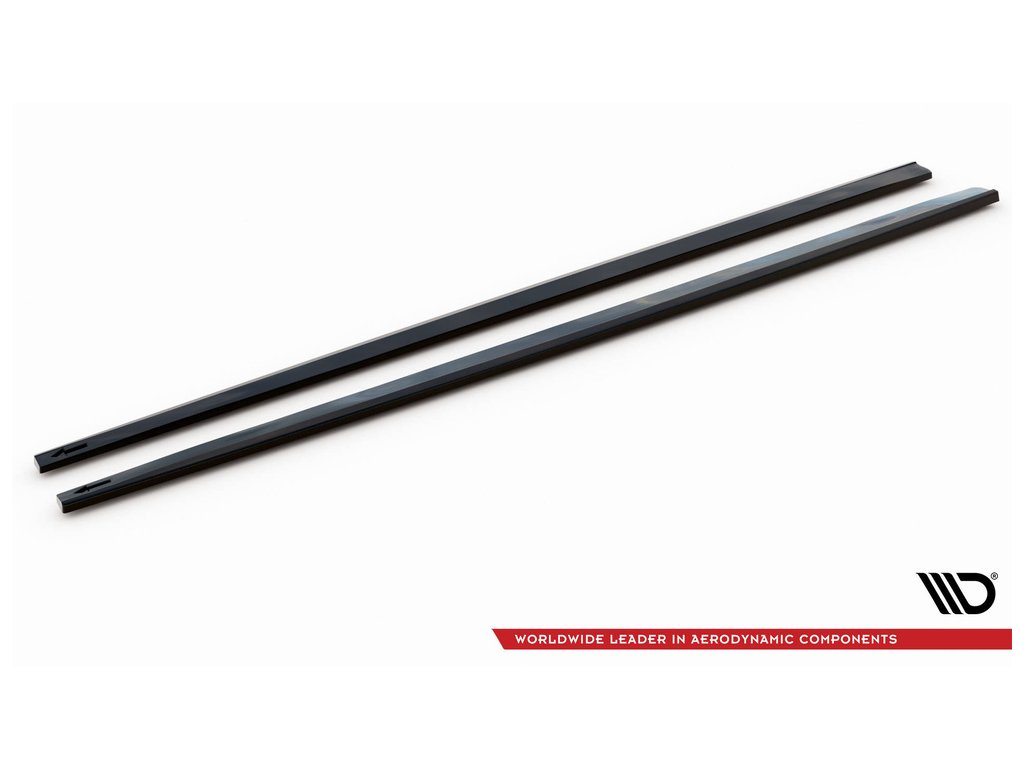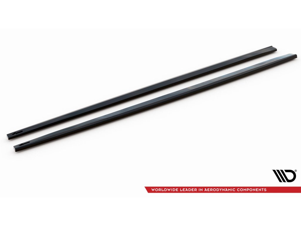 Maxton Design difuzory pod boční prahy pro vozidlo Porsche Panamera 971 E-Hybrid . Povrchová úprava spoileru černý lesklý plast ABS.