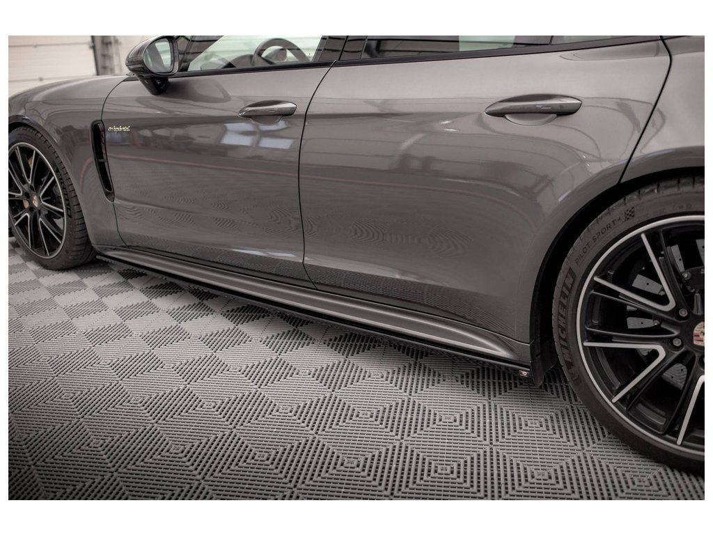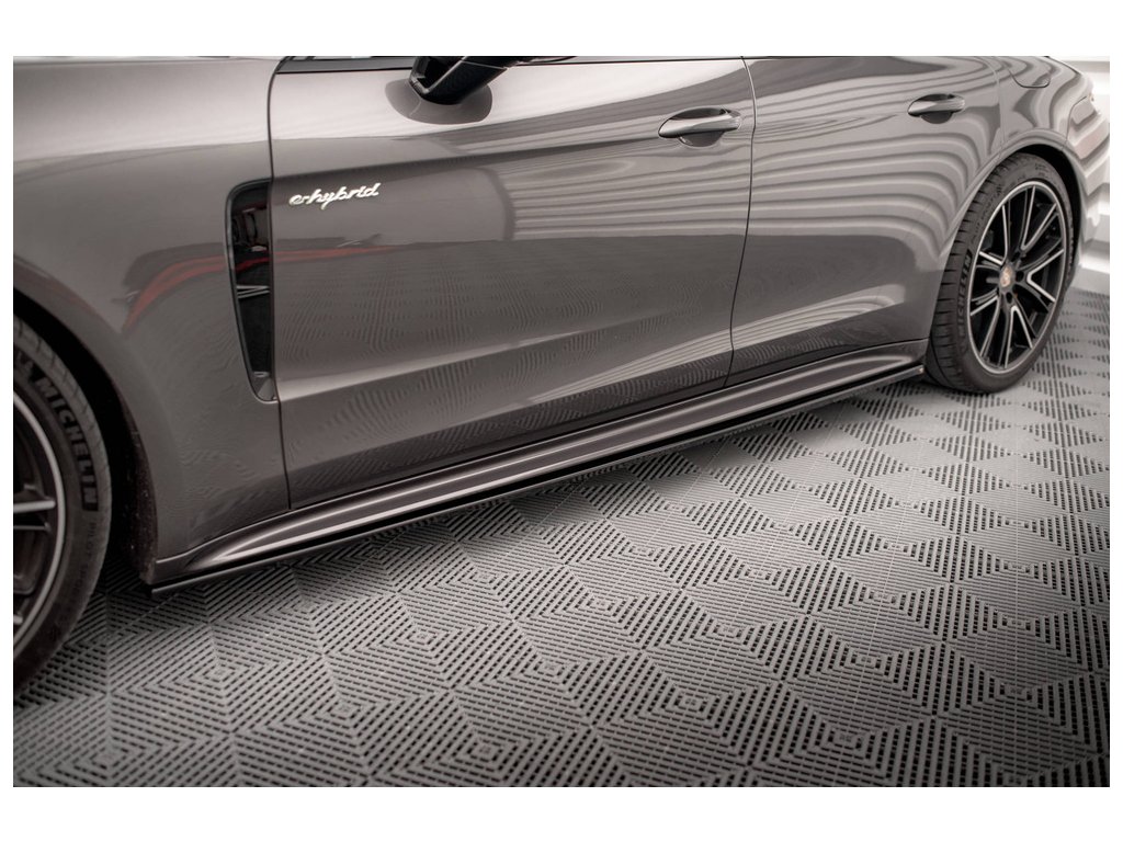 Maxton Design difuzory pod boční prahy pro Porsche Panamera 971 E-Hybrid, černý lesklý plast ABS