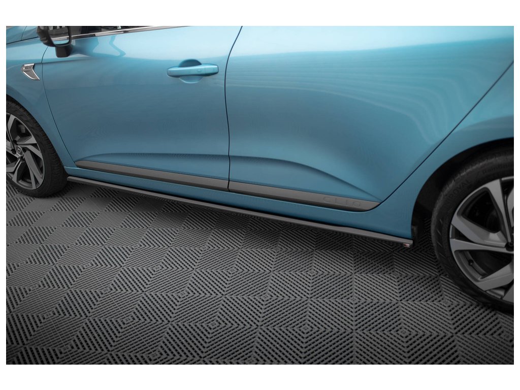 Maxton Design difuzory pod boční prahy pro vozidlo Renault Clio Mk5 R.S. Line . Povrchová úprava spoileru černý lesklý plast ABS.