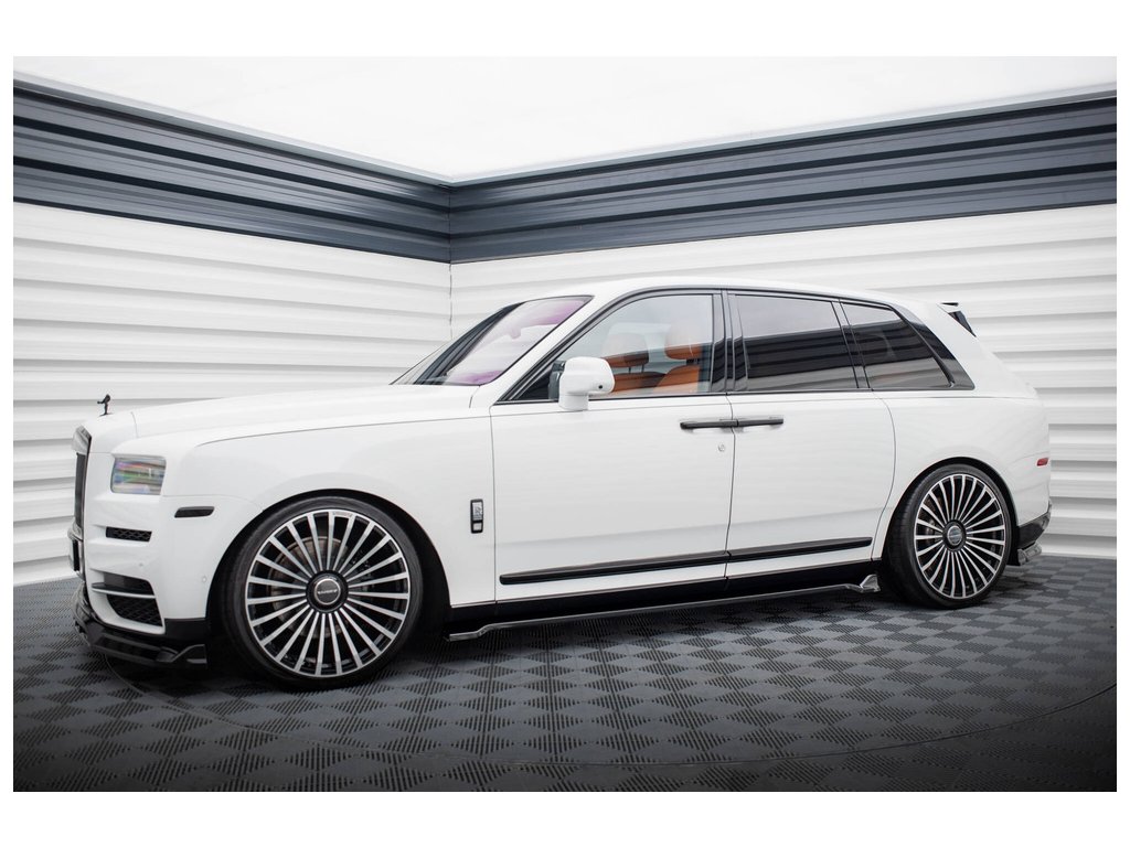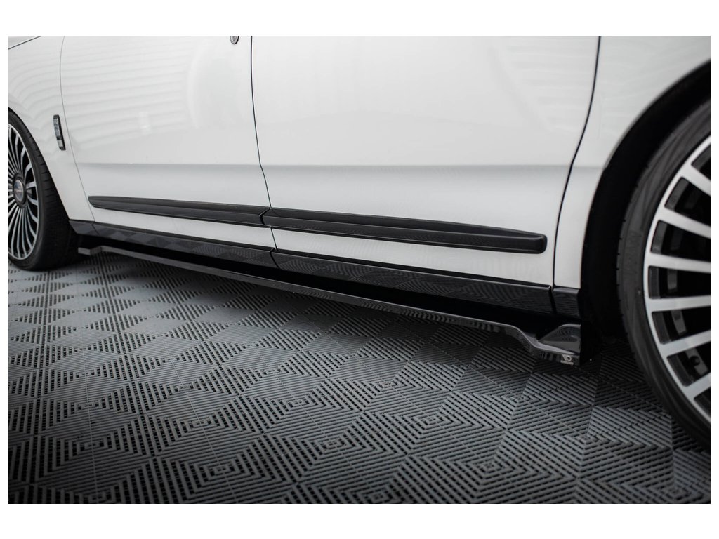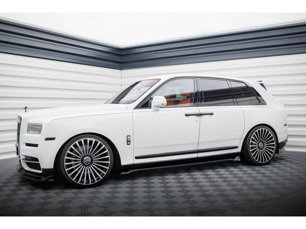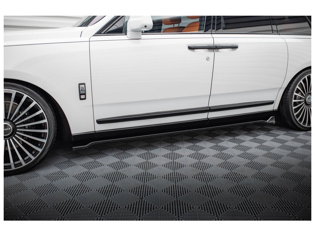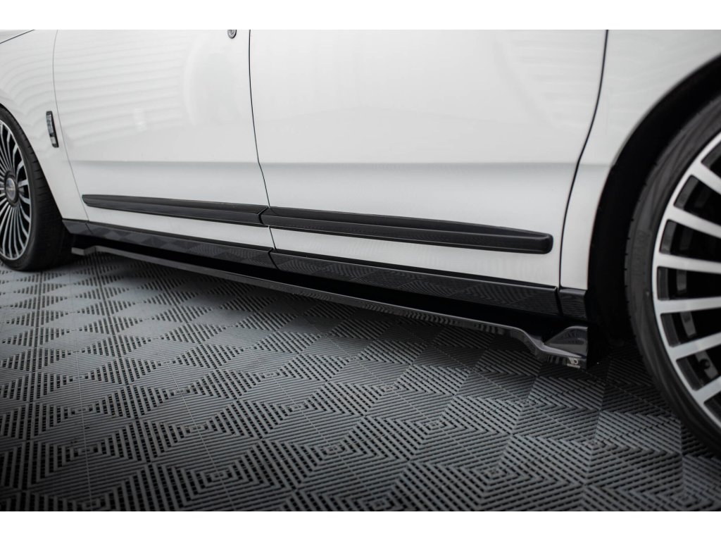 Maxton Design difuzory pod boční prahy pro vozidlo Rolls Royce Cullinan . Povrchová úprava spoileru černý lesklý plast ABS.