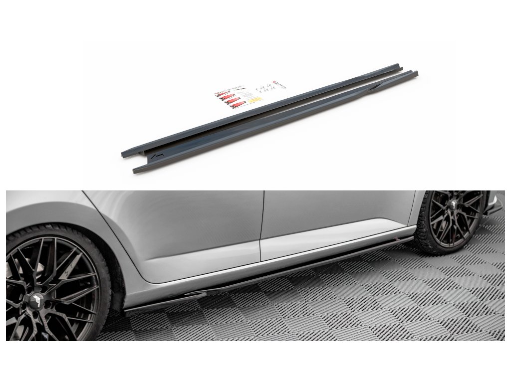 Maxton Design difuzory pod boční prahy pro vozidlo Škoda Fabia Mk3 . Povrchová úprava spoileru carbon-Look.