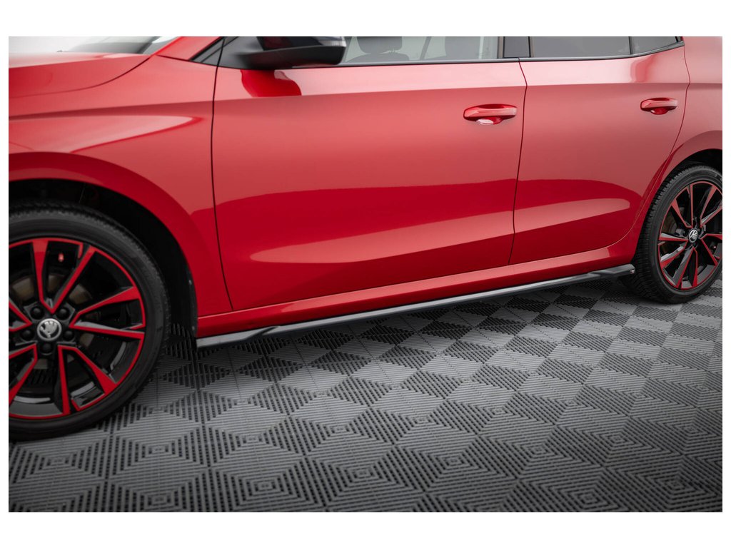 Maxton Design difuzory pod boční prahy pro vozidlo Škoda Fabia Mk4 . Povrchová úprava spoileru černý lesklý plast ABS.