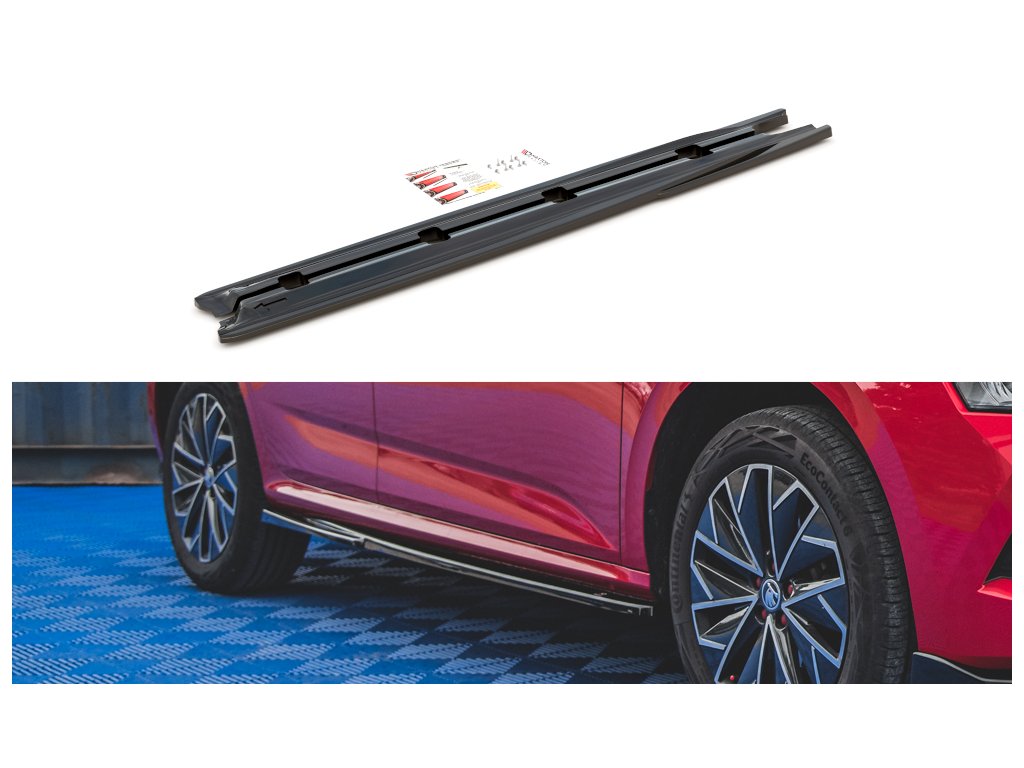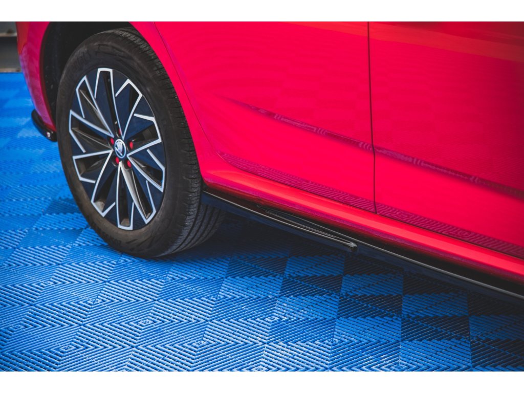 Maxton Design difuzory pod boční prahy pro vozidlo Škoda Kamiq . Povrchová úprava spoileru carbon-Look.