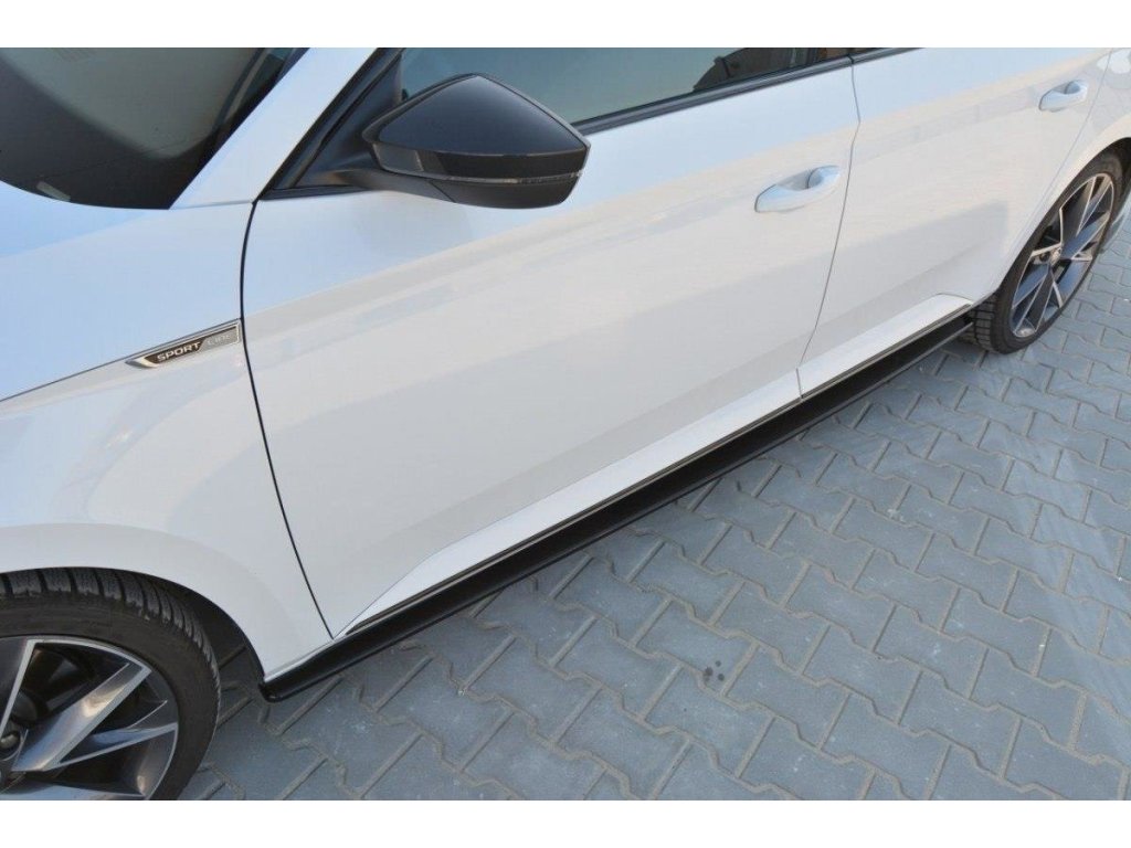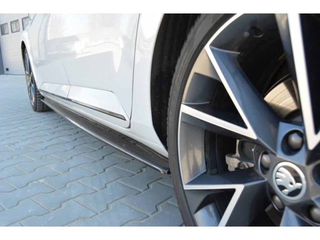 Maxton Design difuzory pod boční prahy pro vozidlo Škoda Superb Mk3 . Povrchová úprava spoileru carbon-Look.