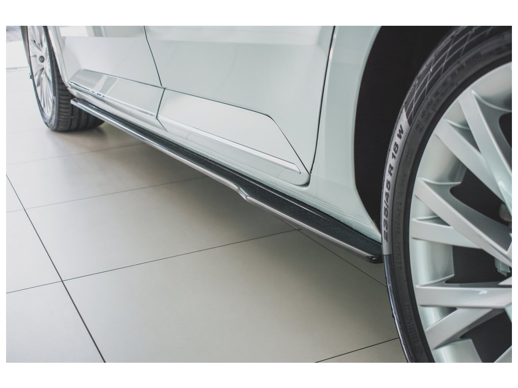 Difuzory bočních prahů Skoda Superb Mk3 FL, povrchová úprava černý lesklý plast ABS.