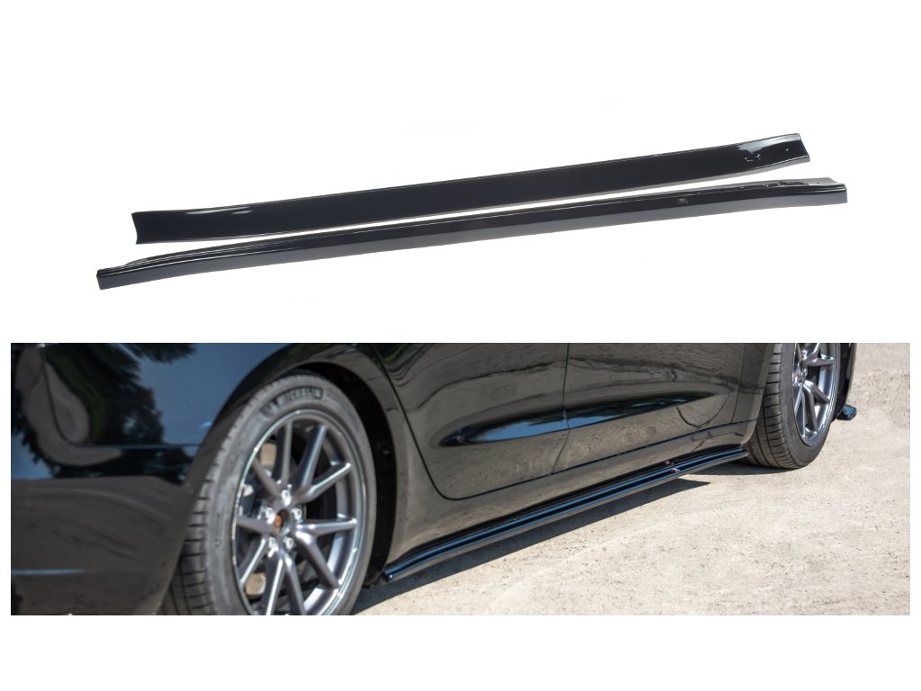 Maxton Design difuzory pod boční prahy pro vozidlo Tesla Model 3 . Povrchová úprava spoileru carbon-Look.