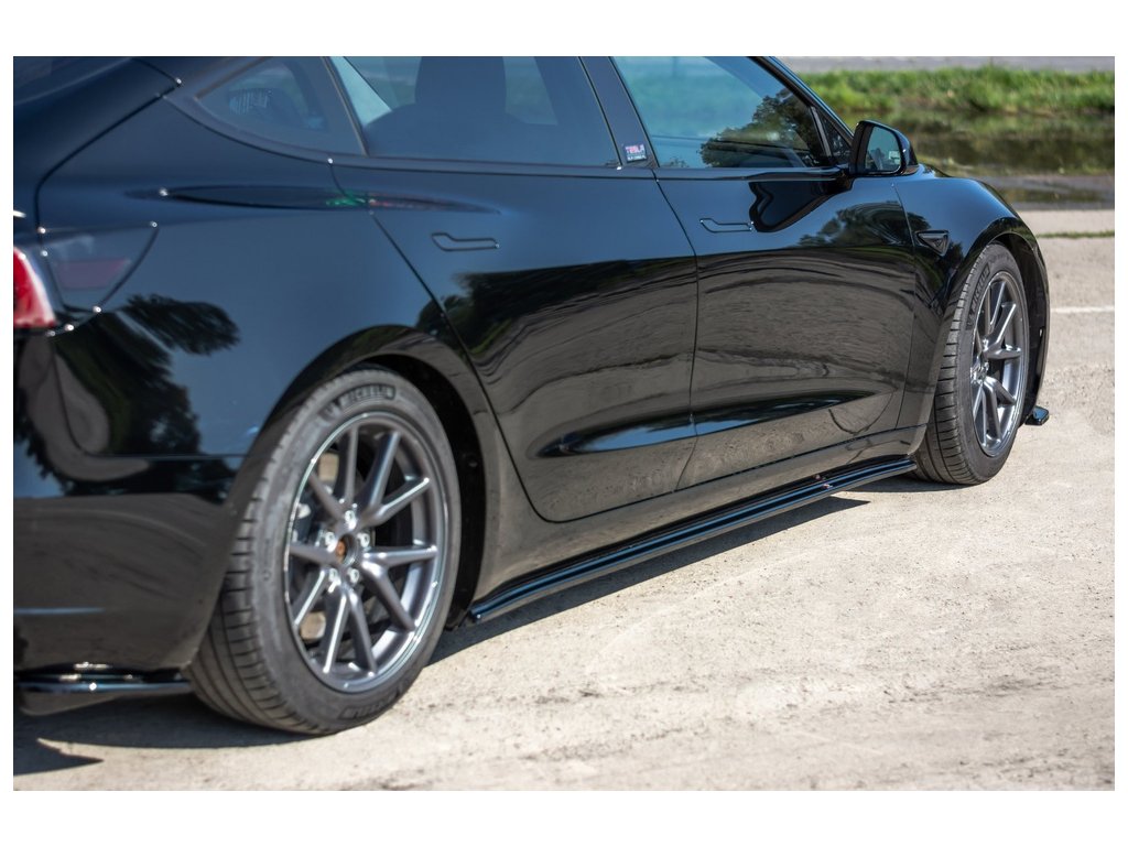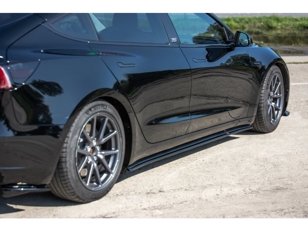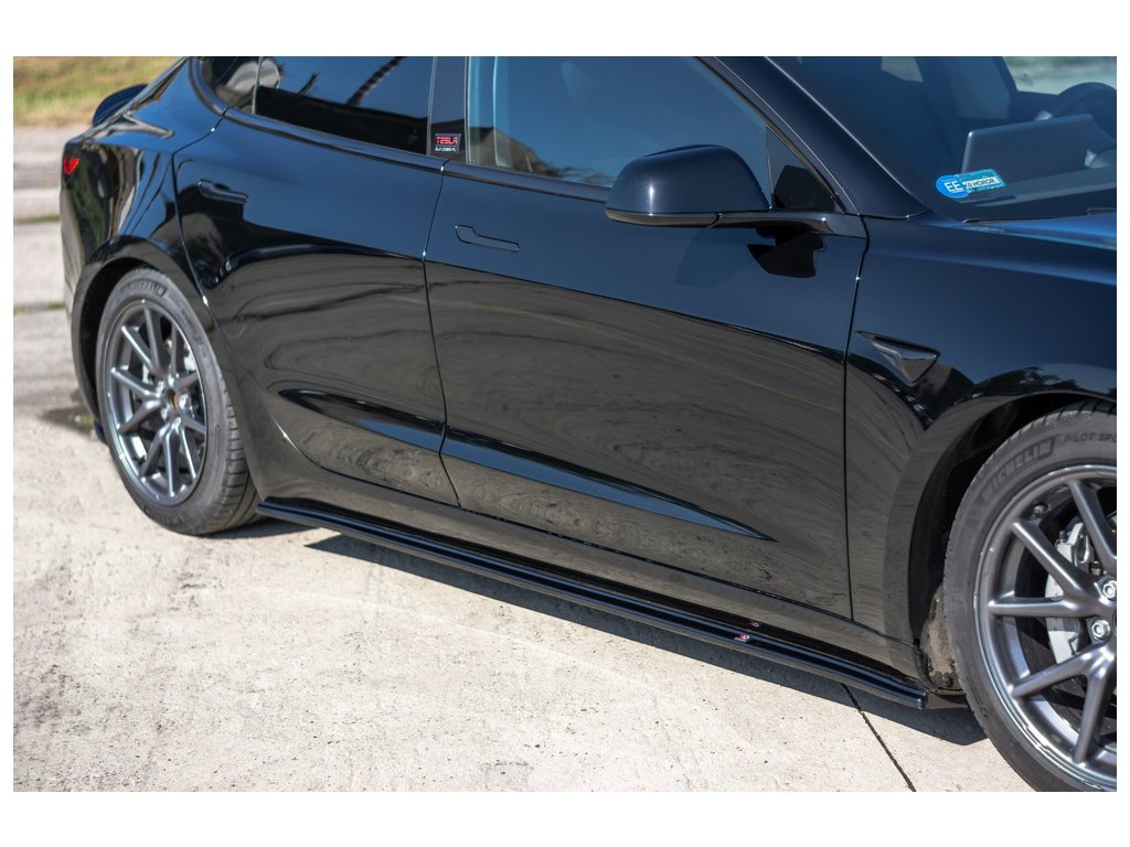 Maxton Design difuzory pod boční prahy pro vozidlo Tesla Model 3 Mk1 . Povrchová úprava spoileru černý lesklý plast ABS.
