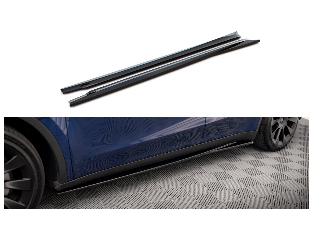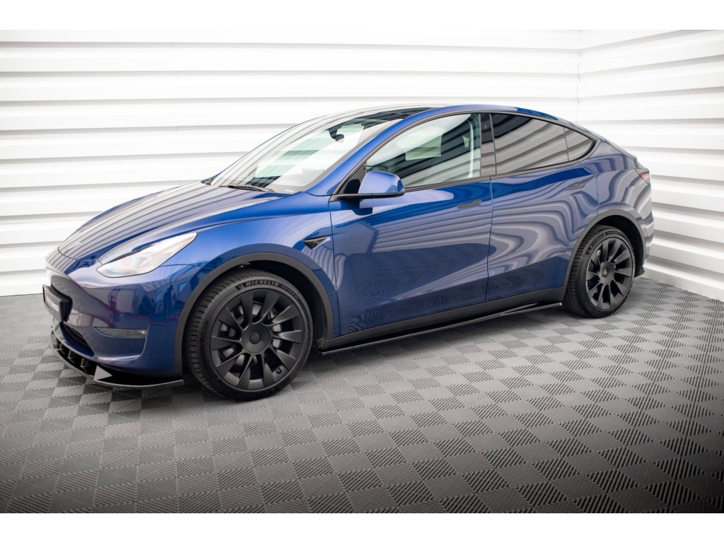 Maxton Design difuzory pod boční prahy pro vozidlo Tesla Model Y . Povrchová úprava spoileru carbon-Look.