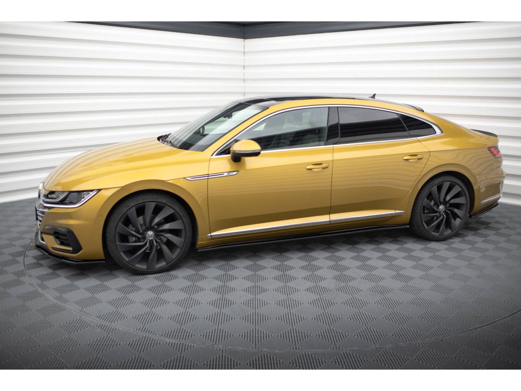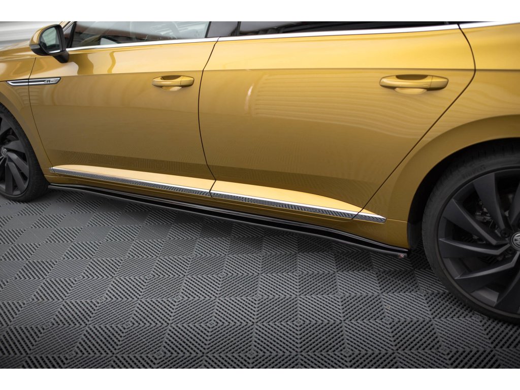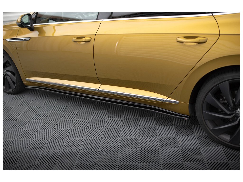 Maxton Design difuzory pod boční prahy pro vozidlo Volkswagen Arteon . Povrchová úprava spoileru černý lesklý plast ABS.