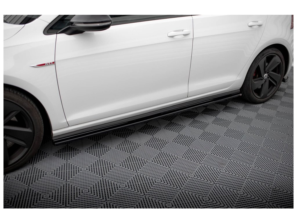 Maxton Design difuzory pod boční prahy pro vozidlo Volkswagen Golf GTI Mk7 . Povrchová úprava spoileru černý lesklý plast ABS.