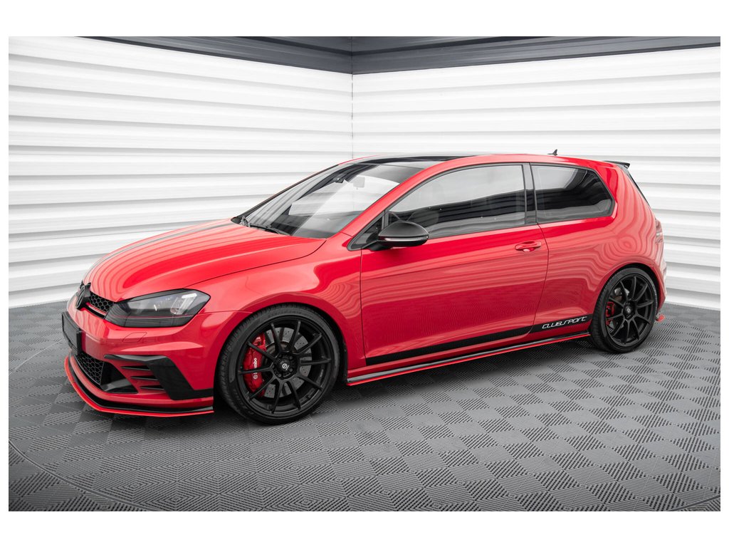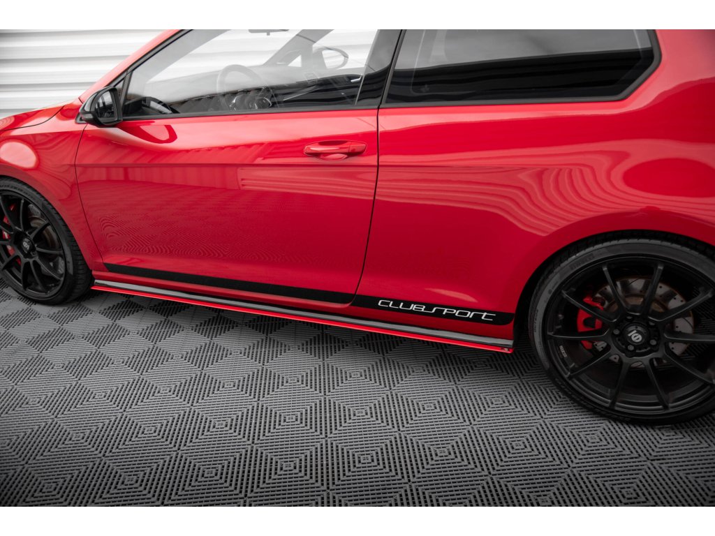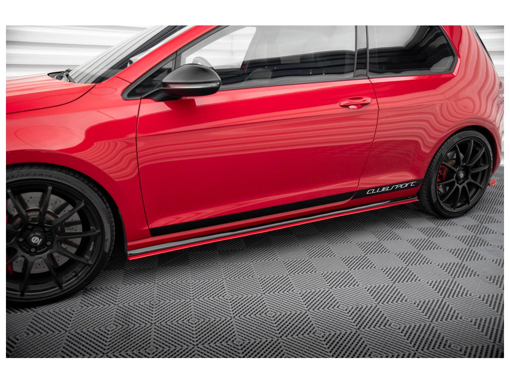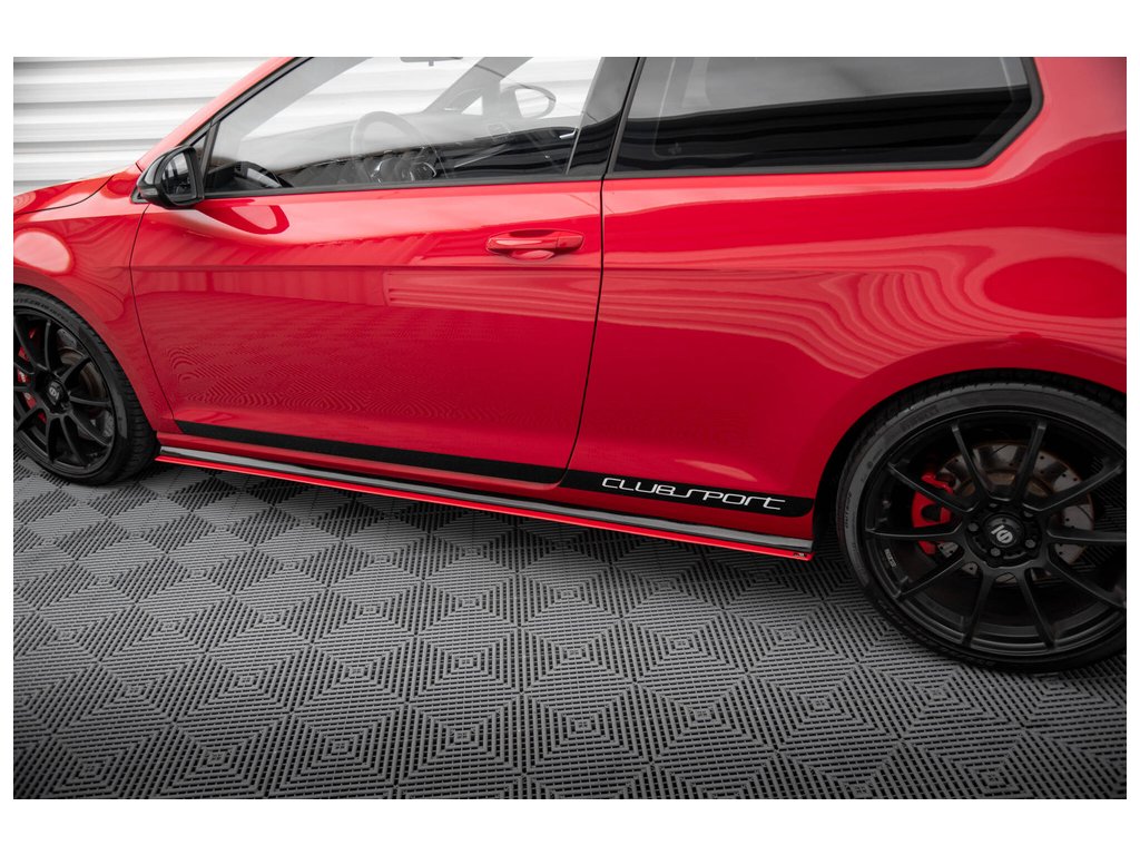 Maxton Design difuzory pod boční prahy pro vozidlo Volkswagen Golf GTI Mk7 . Povrchová úprava spoileru červený lesklý plast ABS.