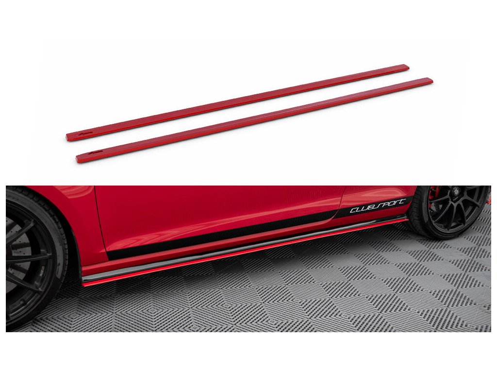 Difuzory bočních prahů Volkswagen GOLF Mk7 GTI CLUBSPORT, povrchová úprava červený lesklý plast ABS.