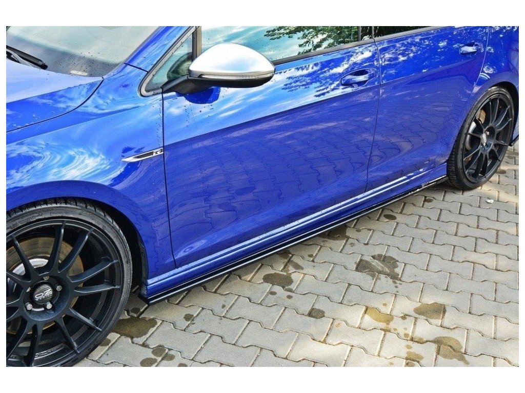 Maxton Design difuzory pod boční prahy pro vozidlo Volkswagen Golf R Mk7 . Povrchová úprava spoileru černý lesklý plast ABS.