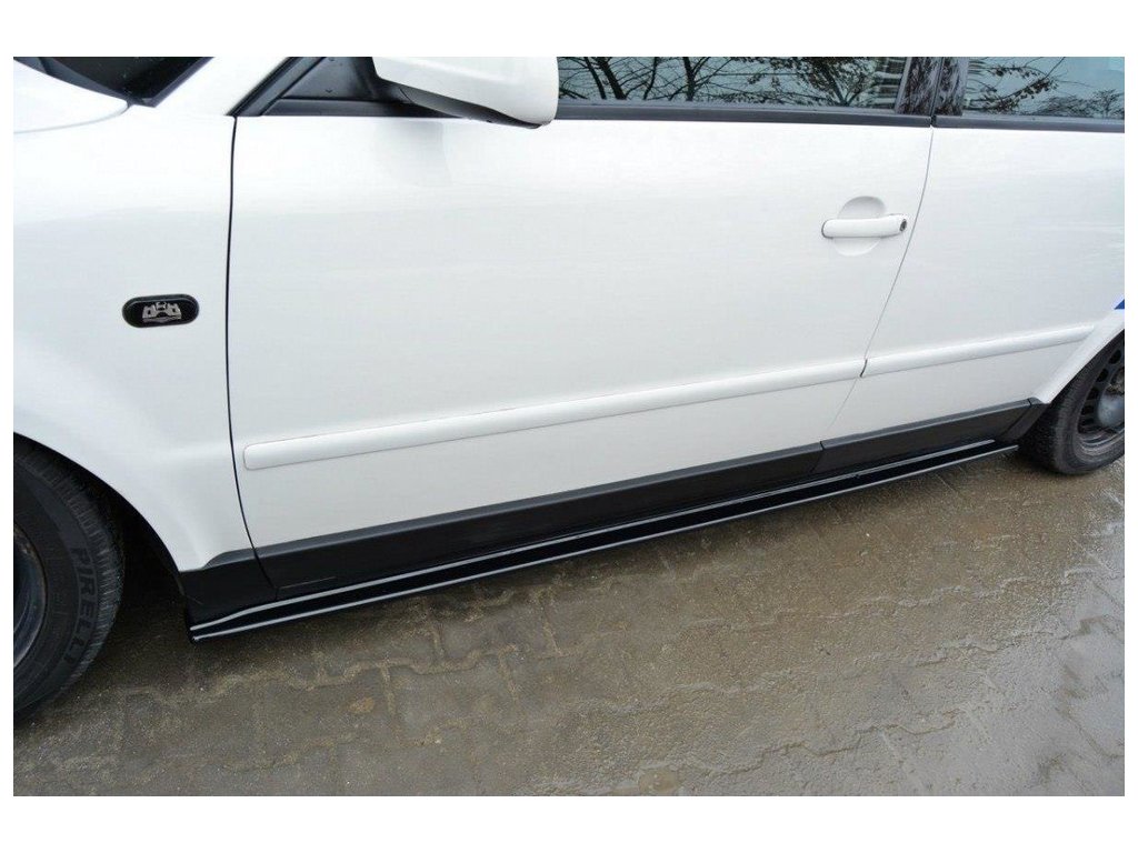 Maxton Design difuzory pod boční prahy pro vozidlo Volkswagen Passat Mk5 (B5) . Povrchová úprava spoileru černý lesklý plast ABS.
