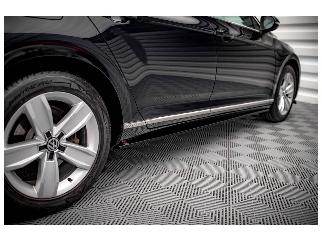 Maxton Design difuzory pod boční prahy pro vozidlo Volkswagen Passat Mk8 (B8) Facelift . Povrchová úprava spoileru černý lesklý plast ABS.