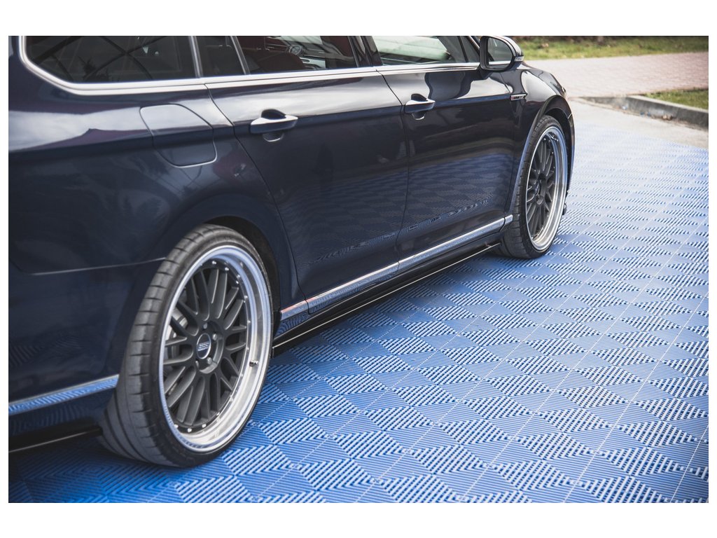 Maxton Design difuzory pod boční prahy pro vozidlo Volkswagen Passat Mk8 (B8) . Povrchová úprava spoileru černý lesklý plast ABS.