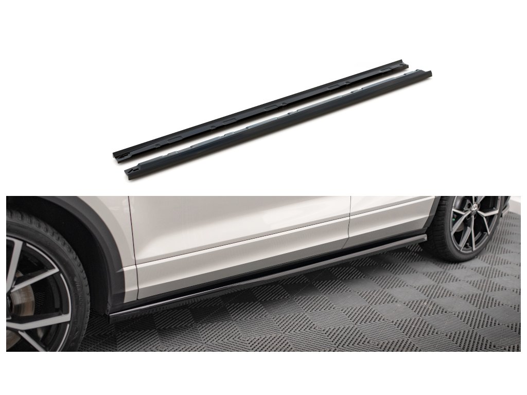 Maxton Design difuzory pod boční prahy pro vozidlo Volkswagen T-roc R Mk1 . Povrchová úprava spoileru carbon-Look.