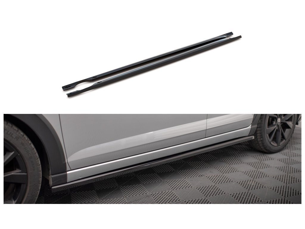 Maxton Design difuzory pod boční prahy pro vozidlo Volkswagen Taigo Mk1 R-Line . Povrchová úprava spoileru carbon-Look.
