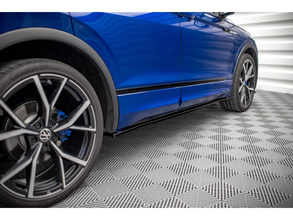 Maxton Design difuzory pod boční prahy pro vozidlo Volkswagen Tiguan R Mk2 Facelift . Povrchová úprava spoileru černý lesklý plast ABS.