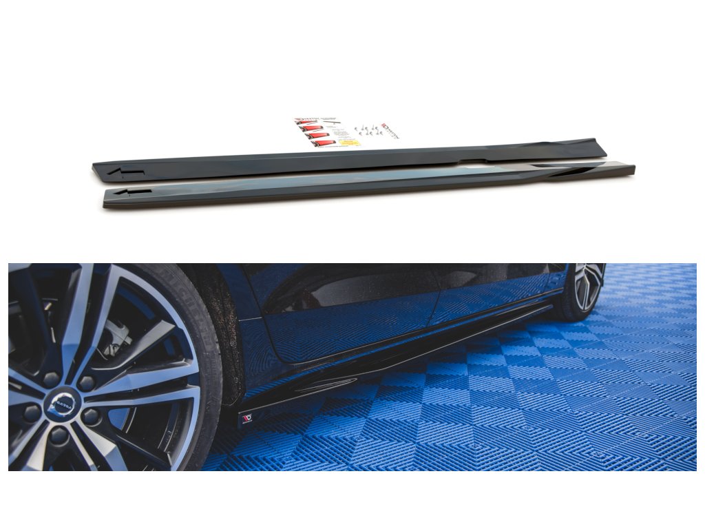 Maxton Design difuzory pod boční prahy pro vozidlo Volvo S60 Mk3 . Povrchová úprava spoileru carbon-Look.