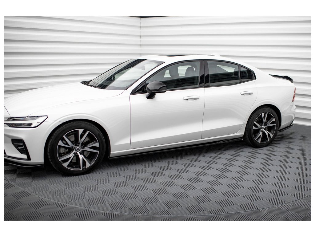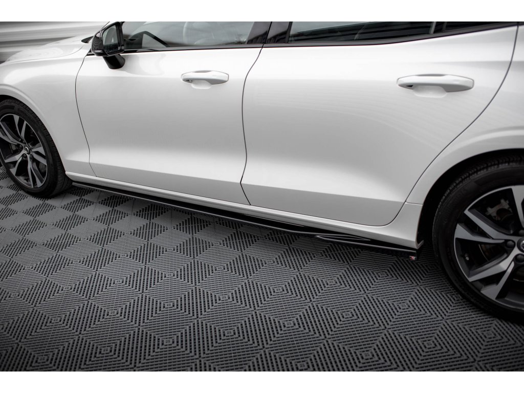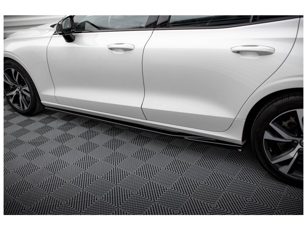 Maxton Design difuzory pod boční prahy pro vozidlo Volvo S60 Mk3 . Povrchová úprava spoileru černý lesklý plast ABS.