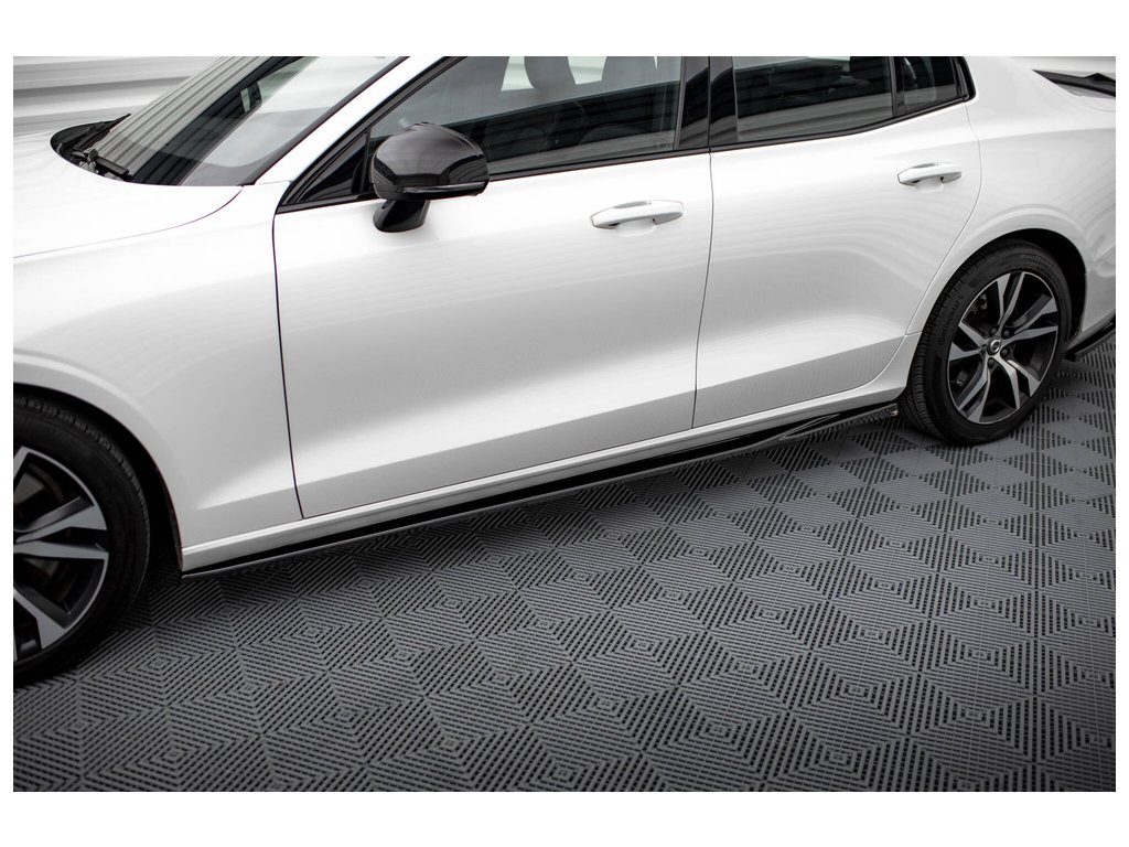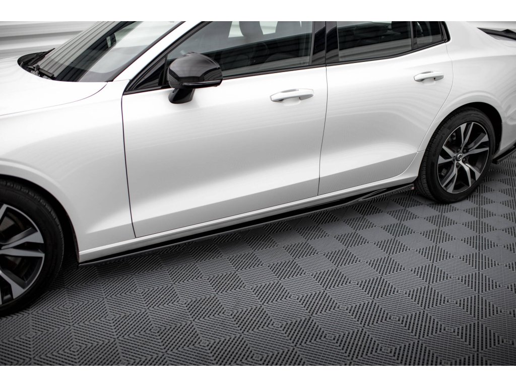 Difuzory bočních prahů V.1 Volvo S60 R-Design Mk3, povrchová úprava černý lesklý plast ABS.