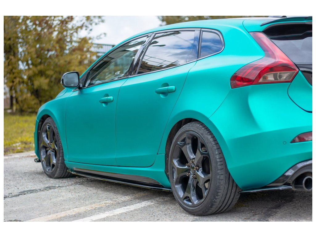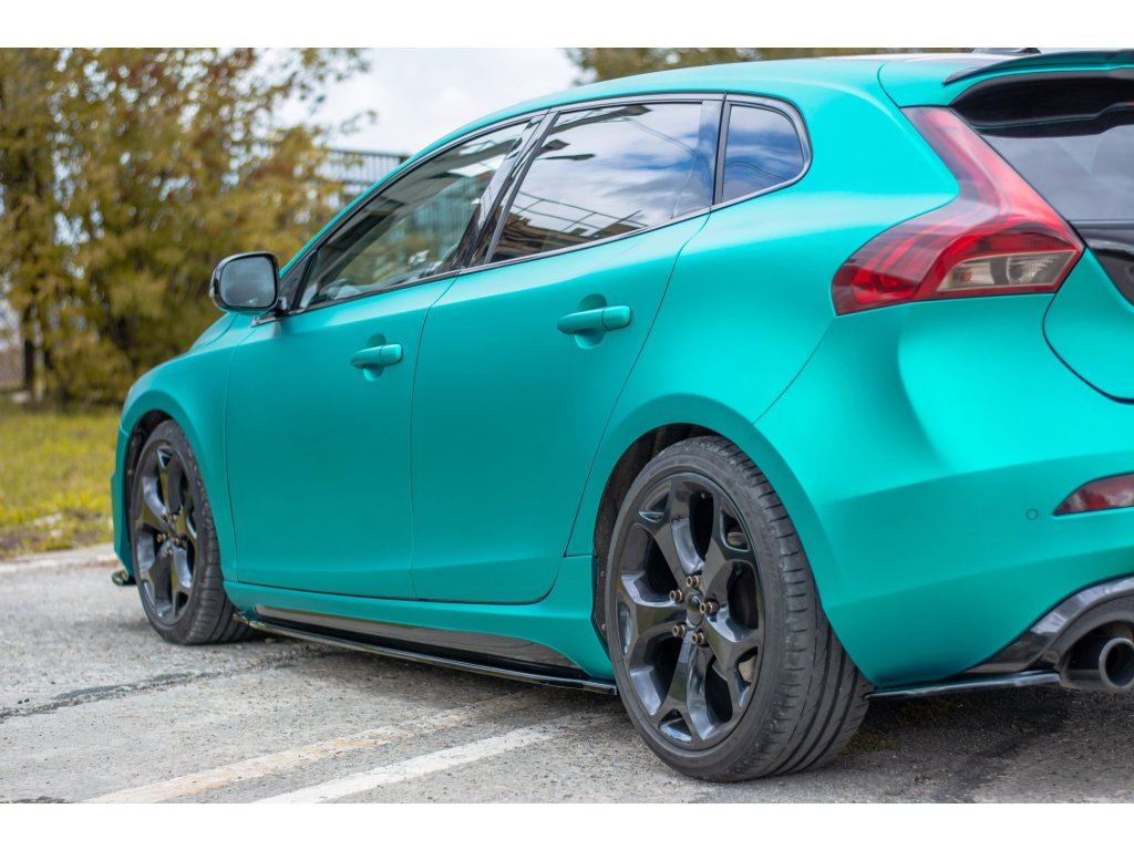 Maxton Design difuzory pod boční prahy pro vozidlo Volvo V40 R-Design . Povrchová úprava spoileru černý lesklý plast ABS.