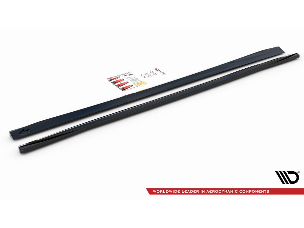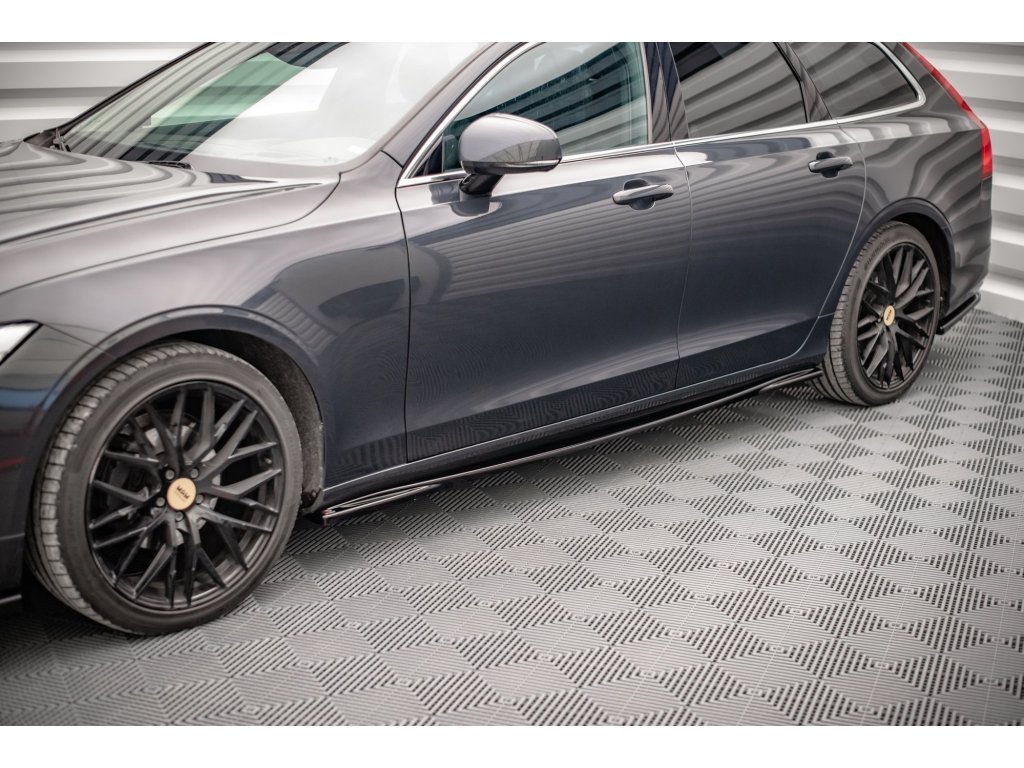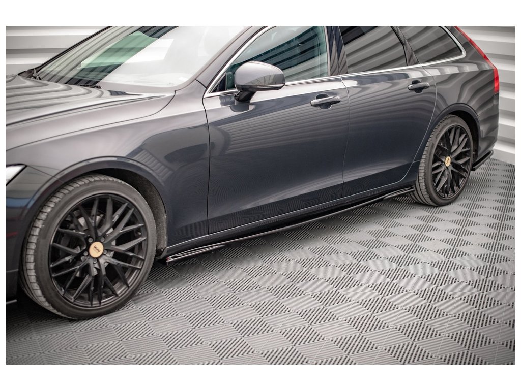 Maxton Design difuzory pod boční prahy pro vozidlo Volvo V90 Mk2 . Povrchová úprava spoileru černý lesklý plast ABS.