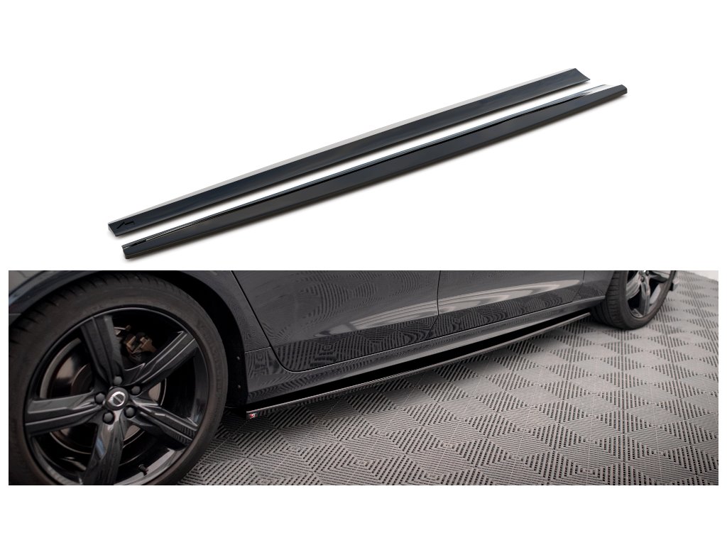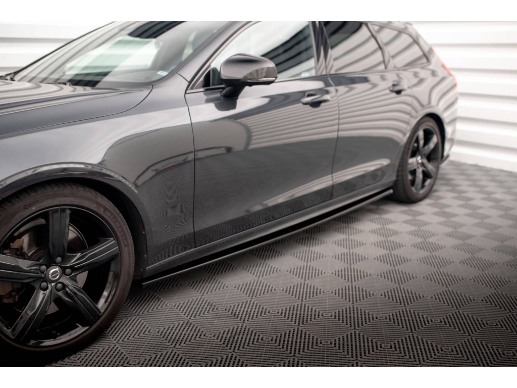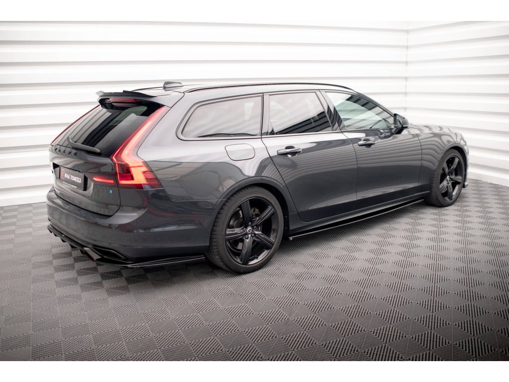 Maxton Design difuzory pod boční prahy pro vozidlo Volvo V90 Mk2 R-Design . Povrchová úprava spoileru carbon-Look.