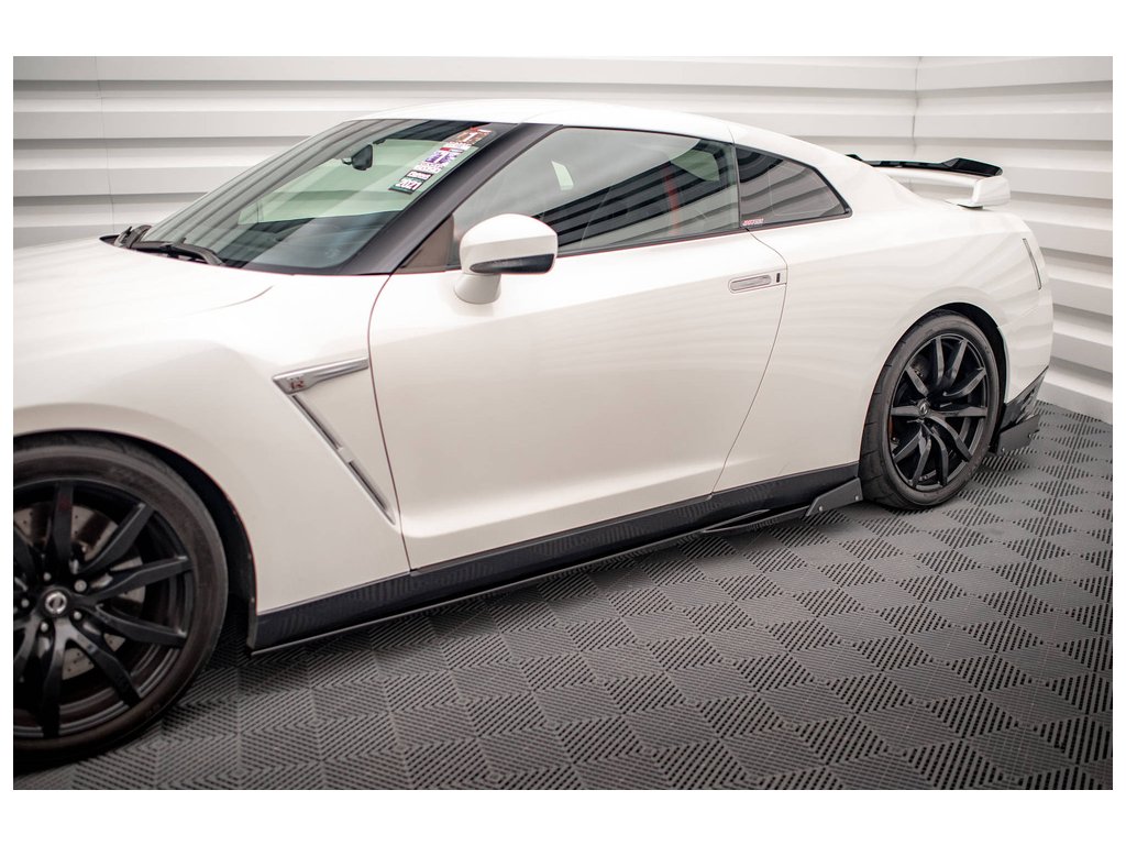 Maxton Design difuzory pod boční prahy s křidélky pro vozidlo Nissan GT-R R35 Facelift . Povrchová úprava spoileru černý lesklý plast ABS.