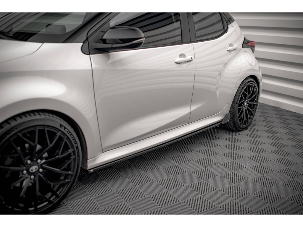 Maxton Design difuzory pod boční prahy s křidélky ver.1 pro vozidlo Toyota Yaris Mk4 . Povrchová úprava spoileru carbon-Look.