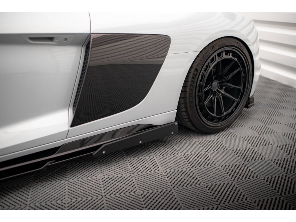 Side Skirts Diffusers V.2+ Flaps Audi R8 Mk2 Facelift, povrchová úprava černý lesklý plast ABS.